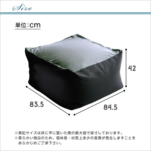【カラー】 ブラック、インディゴブルー、アッシュグレー 【サイズ】 W83.5xH42xD84.5 【重量】 5.9kg 【素材】 中材:発泡ポリスチレンビーズ/高弾性ウレタンフォーム 収縮する生地:ポリエステル88%・ポリウレタン12% 収縮しない生地:ポリエステル100% 【梱包】 サイズ:W59xH59xD59cm、重量:6.9kg 【その他】 ・日本製。 ・洗えるカバーリング。 ・ヘタリに強い新素材高弾性ウレタンフォーム配合。 ・カバーはお客様取付になります。 【ご注意】 ・サイズ、重量は概算です。 ・商品カラーはご使用のモニターによって実際の明るさや色と異なって見える場合がございます。 |