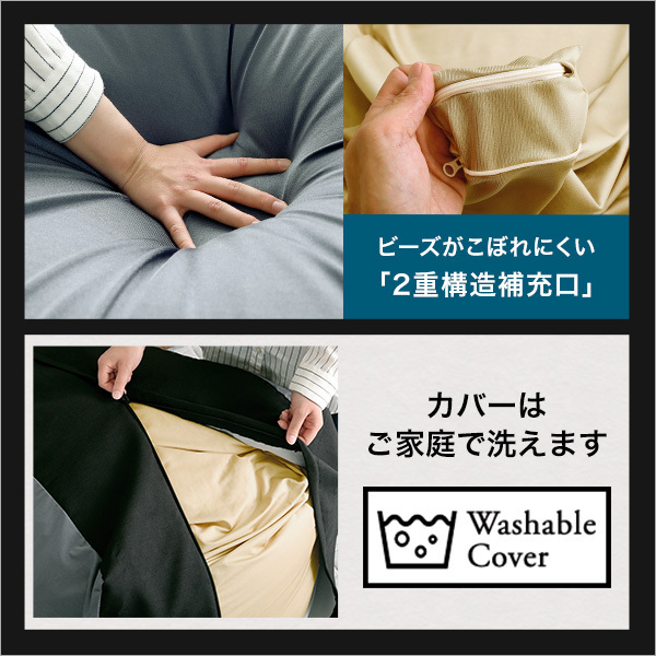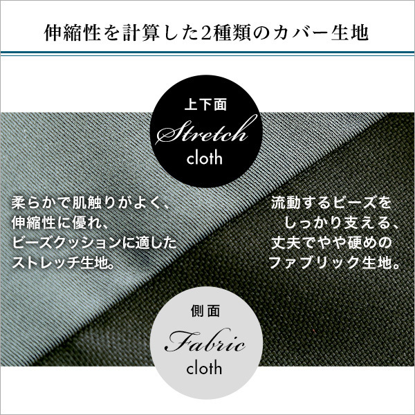 【ポイント】 2wayで使える、洗えるカバー付きビーズクッションです。 ヘタリに強い新素材高弾性ウレタンフォームを配合。 高品質な日本製で、2種類のカバー生地が伸縮性を調節します。 |