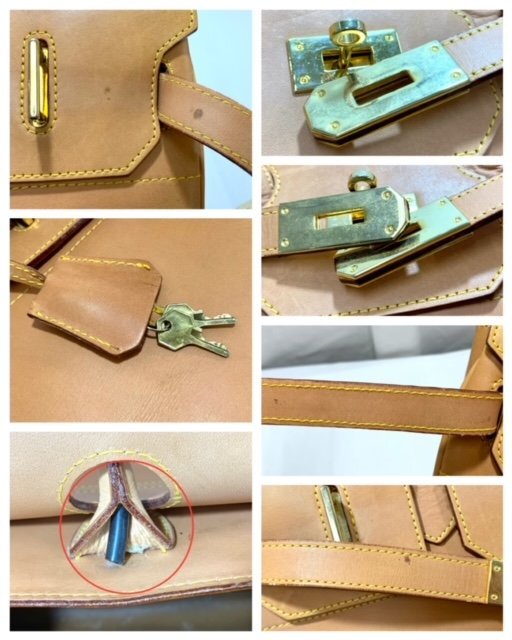 | 商品名 | 【中古品】aspa アスパ ハンドバッグ バーキン型 ブラウンベージュ 革 | サイズ | (約)横38cm×縦25cm×幅12.5cm |