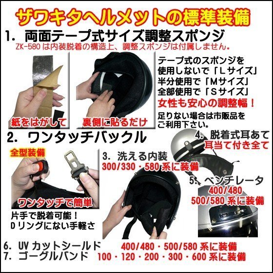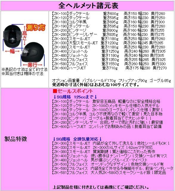 | 対応オプション | ■ZK-540補修用純正交換シールド メットインの中などで意外と傷つきやすいシールドの為、 またはお好みに合わせたドレスアップ用にシールドのご用意があります。 クリアー・ダークスモーク・シルバーミラー・レインボーの4色です。 送料そのままで同梱致します。ぜひ合わせてご利用ください。 |