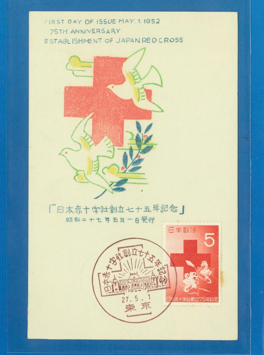 【商品説明】日赤75年 5円貼 記念台紙に初日印押です。