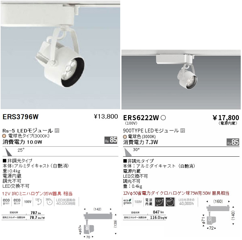 ■メーカー ENDO / 遠藤照明 ■品名 LED照明器具 ■サイズ / 製造年 ERS3796W(12点):142 / 139 / φ67 mm、2018年製 7点、2019年製 5点 ERS6222W(2点):160 / 140 / φ71 mm、2019年製 ■光源色 電球色 ■色温度 3000K ■ERS3796W 詳細 ![]() ■付属品 ありません。