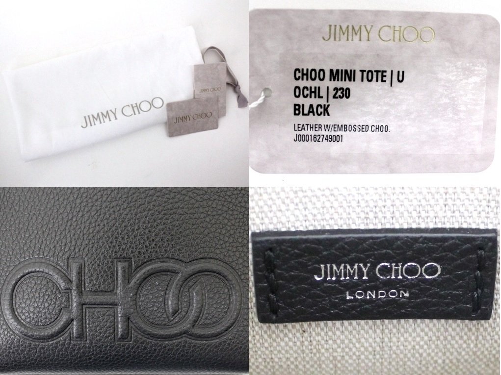 20万新品訳有◆JIMMY CHOOジミーチュウ◆エンボスロゴ入りレザー 軽量クロスボディ・ミニトート2wayバッグ 黒