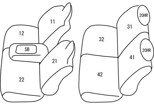 | 適合形状 | 1列目:座面形状が4:6分割、ヘッドレスト一体型、センターシート有り 2列目:背もたれ座面5:5分割、ヘッドレスト有り、シートベルト有り |