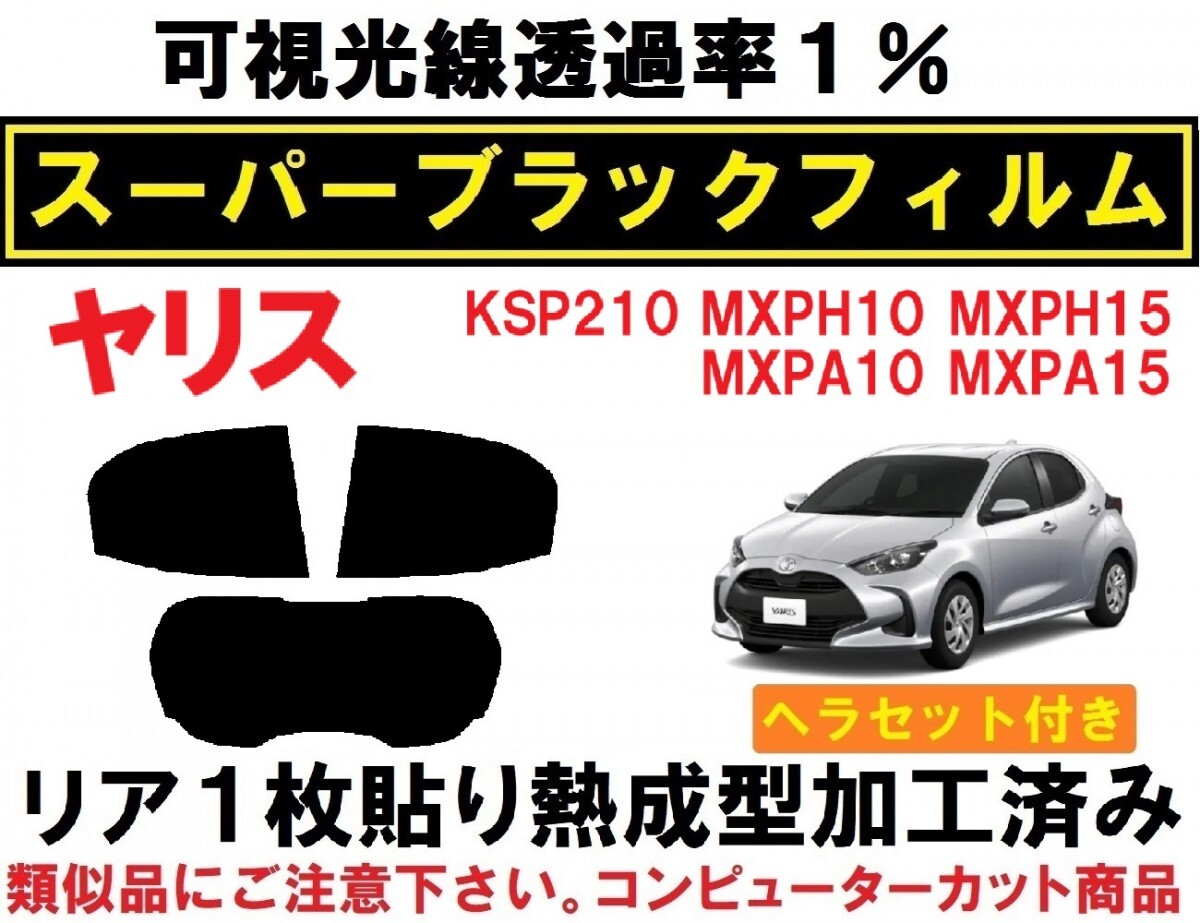 | ヤリス用スーパーブラック『可視光線透過率1%』1枚貼り成型加工済みフィルム リア3面セットです。(専用施工液付き) 令和2年2月~ MXPH10 MXPH15 MXPA10 MXPA15 KSP210 に適合します。 画像3、ハイマウントストップランプ部分の切り抜きも出来ます。 ※適合などご不明な点は、お気軽にご質問下さい。 ◇◆◇当商品には、画像2のヘラセットが付属します◇◆◇ ■滑りの良いシリコンタイプのゴムヘラ スムーズに水切り(清掃)・貼り付け後の水抜きが出来ます。 実際の業務でも色々な物を試しましたが、シンプルなこの形状・このメーカー・このグレードの物が1番使いやすいです。 柔軟性が有りガラス(フィルム)に密着するため、フィルム折れも防げます。 ■使いやすい厚みとコシの有るプラヘラ 形状は似ていても各メーカーにより硬さ・厚みなど色々と有ります。 慣れていない方でも扱い易いように少々柔らか目の物になります。 ヘラ先にはフッ素樹脂加工のクロスを貼って有りますので、滑りが良くキズを防止します。 ■ワイプオール(不織布ワイパー) 布同様の丈夫さと紙の持つ吸水性を発揮。糸くずの発生が無く均一素材のため異物混入の心配が有りません。 施工前のガラスクリーニング~施工時にフィルムが触れる可能性の有るガラスの周りのゴム部品の拭き取り清掃~吸水等に大変便利です。 全て実際の業務に使用している物で、その中から使いやすい物を選んでいます。 ヘラセットがご不用の場合、フィルムのみの商品も有ります。こちら ◇◆◇精密コンピューターカット◇◆◇ 貼りやすさを最優先に各部のサイズ・形状など微調整し、改良を重ねた独自のデータを製作。 高精度な最新・大型カッティングプロッターによるカットで正確で滑らかなカットラインを再現しています。 施工業者だからわかる、貼りやすいサイズ・形状に仕上げています。 ◇◆◇リア1枚貼り成型加工済み◇◆◇ リアガラスの湾曲に合わせて熱成型加工して有りますので、平面に貼るのと同様にたるみが出ず1枚貼り出来ます。 ※最適な状態に成型加工して有りますので、ヒートガン(ドライヤー)等は不要です。 ◇◆◇専用施工液付属◇◆◇ 軽視されがちな施工液ですが、貼りやすさに大きく関わる部分になります。中性洗剤などで代用せず、必ず付属の専用施工液をご使用下さい。 濃度については車種・季節などにより変わりますので、個別にお知らせ致します。 ◇◆◇業務用高品質フィルム使用◇◆◇ 使用しているフィルムは、安心の国内メーカー 業務用高品質フィルム「ニュープロテクション」シリーズです。(可視光線透過率1%) 業務用フィルムの中で最も濃いタイプで、紫外線99%カット 遮熱性も高めです。 同シリーズで可視光線透過率 5% 10% 15% 25% の物もご用意出来ます。 ご希望の場合は、ご落札後濃さの指定をして下さい。(部分的な色変えも可能です) ご指定の無い場合、全て1%になります。 部分的にフィルムが必要になった場合、単品販売も承ります。 他にもヤリス用フィルム、各種出品中です。こちらもご覧ください。 ご不明な点など有りましたら、お気軽にご質問下さい。 | ||