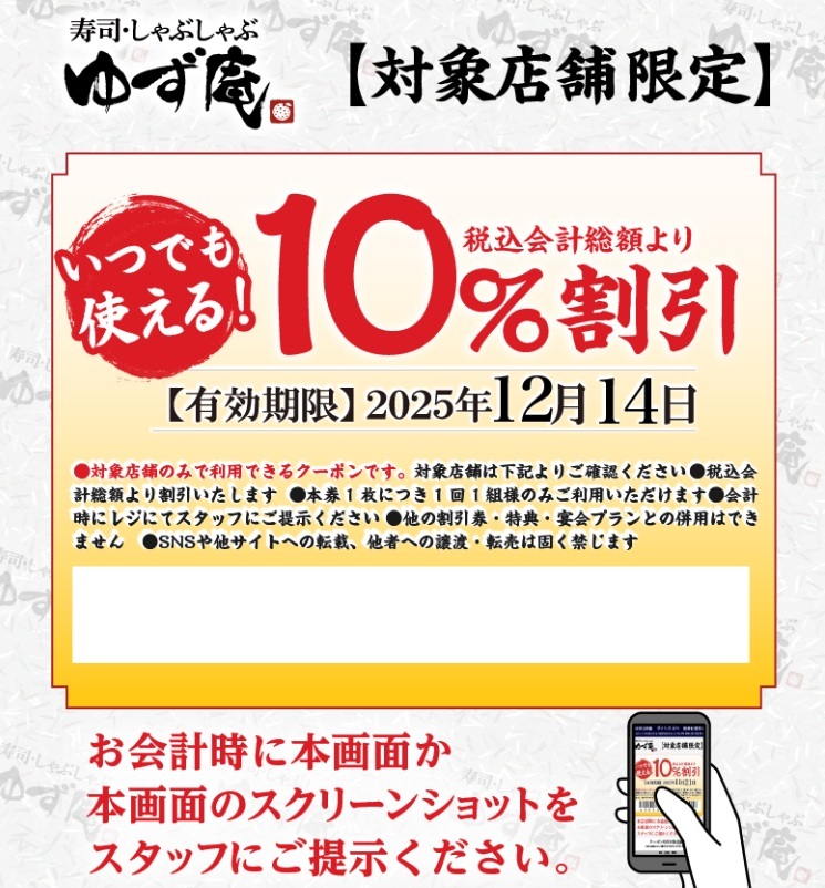 | ■ゆず庵の10%割引クーポンです。 |