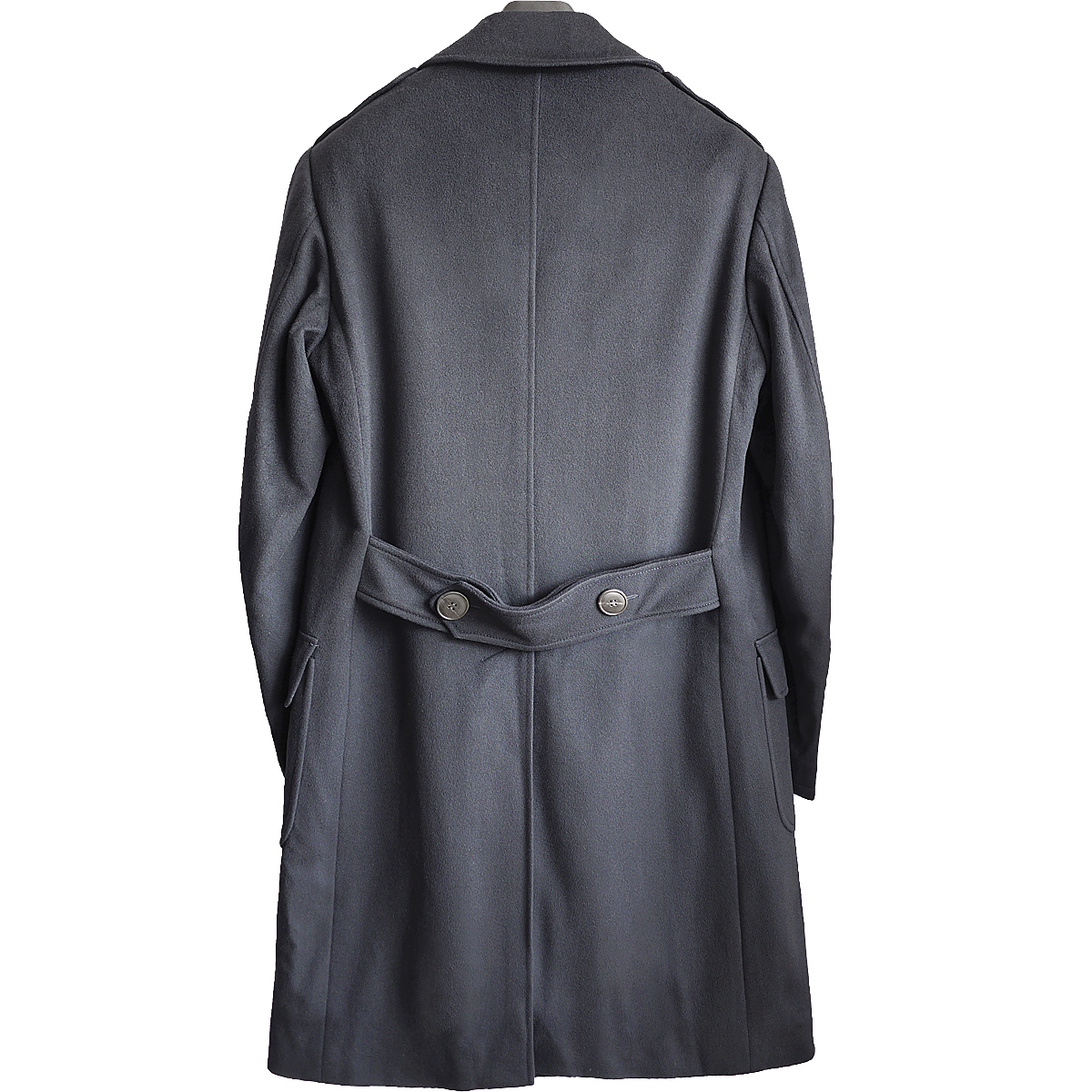 ドルチェ&ガッバーナのカシミアブレンドメルトンダブルブレステッドコートでございます。ドルチェ&ガッバーナの最高級ラインの証であるブラックタグのフラッグシップモデルとなります。ランウェイ画像のマイナーチェンジモデルで、シンプルな中にラグジュアリーなテイストを介在させた大変存在感のあるウィンターコートです。