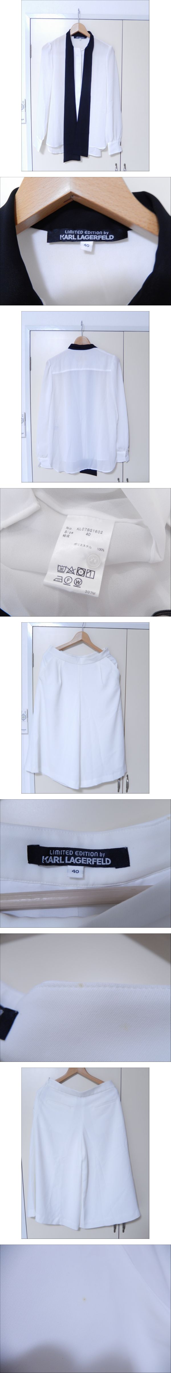 | 【管KO0824】2500円~ KARL LEGERFELD カールラガーフェルド セットアップ 上下 薄手ブラウス キュロットスカート 上下セット 白 | ||
