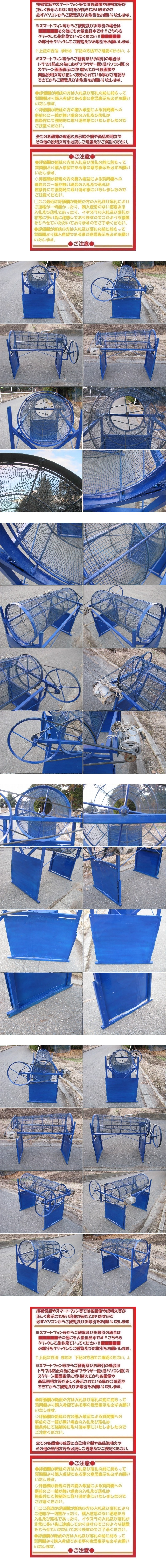 ●電動回転式 土おろし機 大容量タイプ 100V 50Hz&60Hz の出品です。 ■本体外寸 奥行き 約1360㎜ × 横幅 約1140㎜ × 高さ 約1120㎜ (※概算です。) ■ドラム部 内径 約400㎜ × 長さ 約1170㎜ × 網目 約5㎜または約6㎜前後位かな??(←広がりや狭い部分や斜めや重なり箇所等はあります。) ■スケルにて計測していますので絶対値ではありません。 (足周り&モーター&各部各所の最大張り出し部分を含んでおります。) ●離農された旧農家さんの方から譲られました。 ★地元でも大変人気な機種となります。 ●完全に売切ります!! ★値引き交渉等は一切考えておりませんのであらかじめ前もってご一報いたします。 ●前所有者さんの方が離農に伴い使用する機会がなくなった為に譲られたものとなります。 ■キズ&サビ&汚れ&使用感等があります。 ■100V仕様ですので家庭用電源でドラムの回転動作は確認済みです。 ◆金網にはサビやヘコミや曲がりや痛み等が見える部分がありますがこのままでも十分使用可能です。 ■金網は結束線や針金等にて簡易固定されているので金網の交換は可能です。 ●Vベルトは当方で保管していた未使用品2本を装着済みですので交換の必要はありませんので安心です。 ●ちなみに金網やVベルト等はホームセンターにも取り扱っている店舗があります。 ●原因は分かりませんが稼働中にモーターからキュルキュル音が聞こえます。 ●足周りには腐食による欠損や溶接による補修及び補強箇所があります。鉄板には痛みや小穴やデコボコやヘコミや隙間があり劣ります。 ■譲られた物ですので各パーツ類にヘコミや曲りやサビや色剥がれや溶接跡等は見えますが多大な影響はない様子です。 ●全体的に見た目がよくなかったので青色のスプレー缶にて簡易塗装しておりますが素人塗装ですので塗り忘れや色ムラや色タレ跡等がありますので予めご了承ください。 ◆各画像では写真の写り具合がわるとよく写っていますが実物はそうでもありませんので過剰な期待はご遠慮ください。 ●保管している際にどうしてもキズ等がついたり色剥がれ等が起こる場合がありますので大変申し訳ございませんがあらかじめご了承ください。 ■中古でもいいから使用できればOKという方にお譲りいたします。 ●農家さんの方や果樹園や園芸や家庭菜園等に幅広く活用できますので売れ切れ必死です、この機会に是非。。。 ●今現在は外に置いている為に各画像の状態よりもどうしてもキズ等がついたり色剥がれや色あせやサビ等が発生する場合がありますので大変申し訳ございませんがあらかじめご了承ください。 ●当方側にてとくに整備や清掃等は一切しておりませんがこのまま譲渡いたします。 ■このような状態でもご理解頂ける方のみご購入をお願いいたします。 ★尚、値引き交渉等は一切考えておりませんのであらかじめ前もってご一報いたします。 ●いかなる場合がありましても当方側にて見落としや説明不足等がありましても一切責任はもてません、あくまでもこのままの状態にて譲渡いたしますのでここに明記させていただきます。 ■このような状態でもご理解頂ける方のみご購入をお願いいたします。 ●画像のものが全てとなりその他の付属品等はありません。その他に足りない部品やパーツ等があるかも知れませんがあくまでもこのままの現状にて譲渡いたします。 ●状態は当方側と各自個人等とでは見解が異なる場合や見落とし等がある場合がありますので遠くの都道府県及び市町村であっても入札及び落札する前に現物確認をおすすめいたします。 ★尚、値引き交渉等は一切考えておりませんのであらかじめ前もってご一報いたします。 ◎送料はおおよその概算となりますが下記へ記載済みですのでご確認ください↓↓↓ ※各画像のままの状態にて発送いたします。 ●直接引き渡し希望の方は入金先払いのみの条件となりますが当方側にて入金確認後、後日となりますが当方のスケジュールの都合が合えば引き渡しは可能です。 ※落札後及び入金後は1ヵ月以内の引き取りに来られる方のみとさせていただきます。 ●この機体のおおよその目安の着払い送料は↓↓↓(№65★AA) ★西濃運輸をご利用の場合:■東京都まで概算ですがおおよそ約16000円前後(営業所止めのみとなり、配達は不可能です。) ※西濃運輸にて離島などの場合は送料が倍以上になったり、発送できない場合もありますのでトラブル防止の為に質問より事前にお問い合わせください。 ■■発送方法についての注意事項↓↓■■ (№65★AA) ●発送時は当方で利用している運送会社のパレット便発送の送料着払いのみにて発送依頼いたします。 ★利用運送会社は西濃運輸(最寄りの営業所止めのみとなります。)送料着払いのみにて発送依頼いたします。 ※隣町に西濃運輸の代理店がありますのでお時間や日数をいただきますが直接持込みます。 ■離島などの場合は発送依頼できないところもありますのでトラブル防止の為に入札及び落札する前に