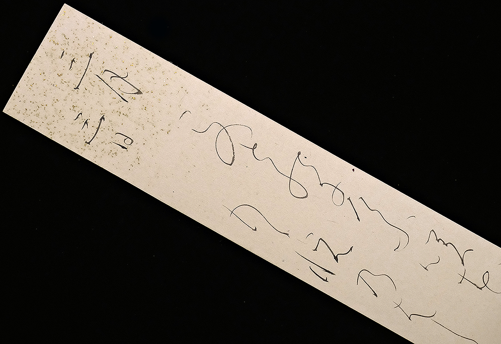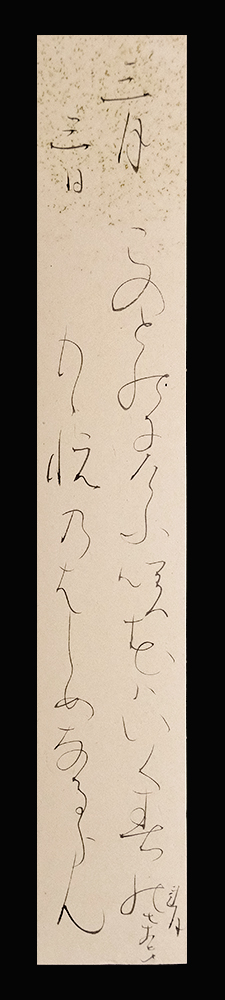 【読み】 「この殿にけふ咲花は いく春の もゝ悦(よろこび)のはじめなるらん 蓮月 七十七才」 紙本肉筆未装短冊1点 作品寸法:36.2cm x 6.0cm 商品状態:美品。実際の品を画像にてお確かめ下さい。 ★本品は印刷ではなく肉筆保証の作品です。 ★本品は真作保証の作品です。 大田垣蓮月(おおたがき-れんげつ) 1791-1875。江戸後期-明治時代の歌人。寛政3年1月8日生まれ。京都知恩院の寺侍大田垣光古(てるひさ)の養女。2度むかえた夫や子供らに先だたれ文政6年出家,蓮月尼と称した。自分の歌をほりこんだ陶器蓮月焼で知られる。和歌は上田秋成,六人部是香(むとべ-よしか)にまなんだという。明治8年12月10日死去。85歳。京都出身。本姓は藤堂。名は誠(のぶ)。家集に「海人の刈藻(かるも)」。 出典:講談社『デジタル版 日本人名大辞典+Plus』 |