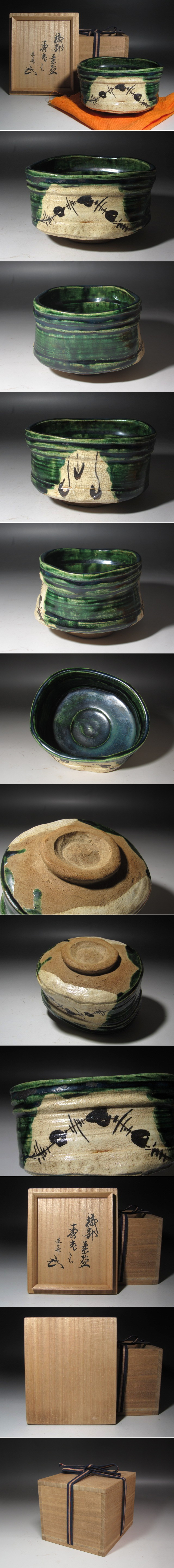 ★ 古織部茶碗 寿老 薮内家 十一代 透月斎 竹窓 花押がございます★x584