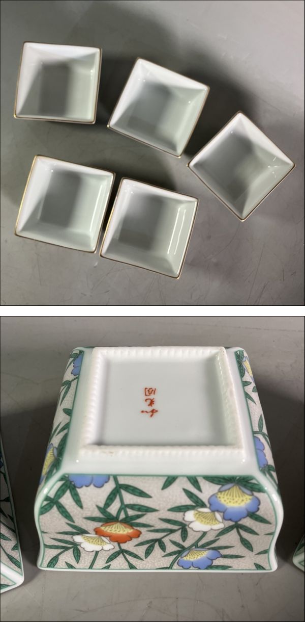| M2-233 有田焼 和光園 金縁 銀彩華 角小鉢 5客揃え 華小鉢 | ||