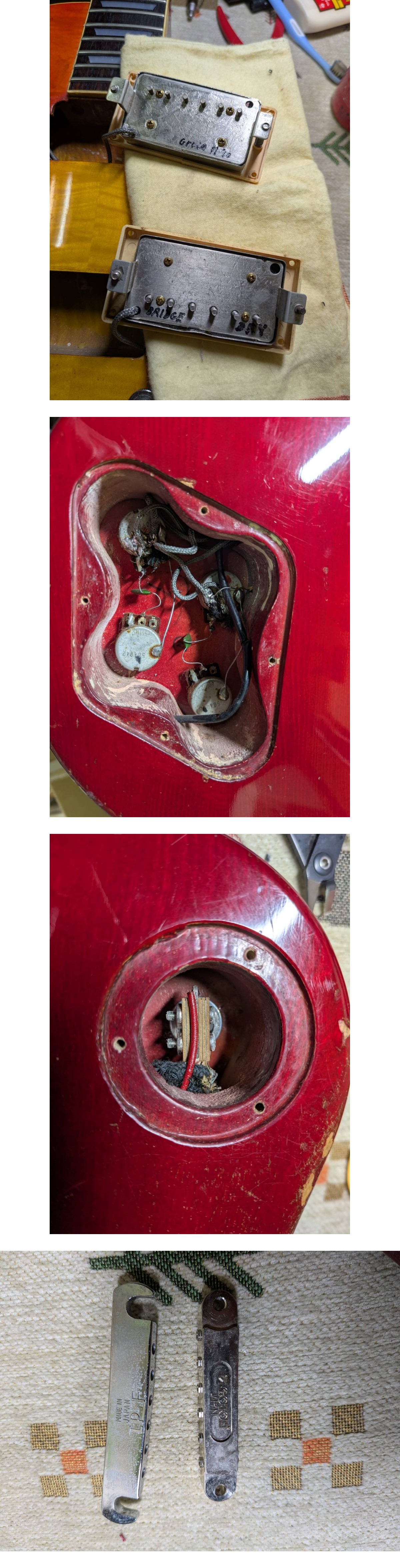※入札を検討されている方へ※ 最近、落札後にキャンセルが多く困っています 新規の入札はお断りさせて戴いております。 こちらで悪質な入札と判断した場合には、ブラックリストに登録させて頂きますのでご了承ください。 以上ご理解の上、入札して頂きますようお願いいたします。 ◇シリアルNo.H784033 ◇ボディサイドには大きく塗装が欠けたキズがあります。各所に多数キズがあります。 ◇ネック側のエスカッションが割れています。 ◇ビス穴が大きくなってしまい、ビスがスカスカな場所が3箇所あります。 (マスキングテープの位置) ◇各ポット類はガリつきが酷く出ています。 ◇ネックボリュームは接触不良があります。 ◇ピックガードが欠品しています。 ◇ネック状態は良好です。 ◇トラスロッドもまだまだ余裕があります。 ◇現状の弦高 12フレット 6弦側 約1.75mm 1弦側 約1.5mm ◇ペグがシャーラー製に交換されています。 ◇ピックアップも交換されているかと思われます。DRYと書かれていますが、当方では詳細は分かりません。 ◇他の交換箇所等は把握していないので分かりません。 ◇本体サイズ 全長約100㎝ 重さ約3.92㎏ ◇ソフトケースには汚れ・傷があります。 ◇発送はプチプチを巻き、段ボール梱包となります。 ・説明文の不備がある場合もございますので、写真の状態を優先にご検討ください。 ・写真撮影は、デジカメで行っておりますので、色の誤差など出る場合があります。 ・中古品である事をご理解いただき、神経質な方のご入札はご遠慮ください。 ・ご不明な点はお気軽にご質問下さい。 ・商品をご理解頂いた上での入札して頂き、すり替え防止の為、ノークレーム、ノーリターンでお願い致します。 ・入札後のキャンセルは間に合わない可能性がありますので、入札の際にはご注意ください。 ・タイトルや、説明文中に程度の表現(綺麗、美品、極上中古等)が入っている場合がございますが、あくまで、個人の感じた内容を記載している物になります。 落札者様が商品を手にとって感じられる感覚にずれが生じてしまったとしても、返品、返金、クレームは受付致しかねます。 |
