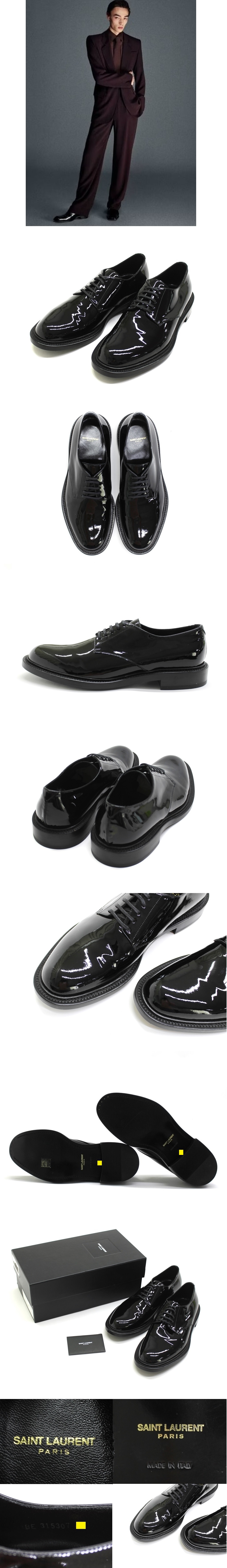 19万新品◆43=28cm◆【サンローラン】パテントレザー シンプルフォーマル レースアップビジネスシューズ 黒