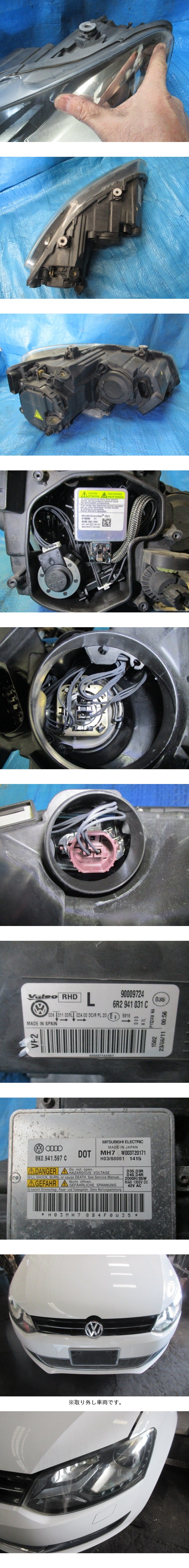 ※下記情報をよくご確認いただいたうえで入札してください。 弊社では「まとめて取引」への対応は行なっておりません。 同梱をご希望の場合はご入札前にご質問下さい。 同梱可能な商品の場合は対応いたします。 また、質問や連絡等なくまとめて購入を選択・決済をされた場合は別途追加の送料をいただくことがあります。 営業日15時までの入金確認で即日発送できます。 日曜日、第2・第4土曜日、祝祭日はお休みを頂いてます。 ■取り外し車両 ●認定型式=DBA-6RCBZ(フォルクスワーゲン ポロ) ●年式=2012/11 ●車体番号=WVWZZZ6RZCU009*** ●走行距離=154,153km ●エンジン型式=CBZ(1.2L車) ●ミッション=7AT ●型式指定/類別区分=16488/0101 ●グレード=TSIコンフォートライン ●駆動=2WD ●ハンドル位置=右 ■詳細 ・上記車両からの取り外しです。 ・6Rポロの左ヘッドライトの出品です。 ・純正 HID車 助手席側(右ハンドル車) TSIコンフォートライン ●メーカー/No. Valeo 90009724 6R2 941 031 C ■状態 ・全体的に・・・ 黄ばみ・内ヒビ・飛び石キズ多数・クリアの劣化あります。 ・上部に1cm×20cm程度のクリア剥がれあります。 ・クリアの再塗装あります。 ・取り付け部の損傷はありません。 ・気持ち良くお使い頂く為、出来る限りの掃除はしています。 ※当方で自動車部品を出品していますので、よろしければ下記のURLよりご覧ください。 team818ys出品リスト⇒https://auctions.yahoo.co.jp/seller/team818ys ■在庫管理番号 2500820-4 ■送料 (元払いのみの対応)運送会社の選択はできません。 [ 北海道 ] 2730円 (北海道) [ 東北 ] 2310円 (青森、岩手、秋田、山形、宮城、福島) [ 関東 ] 2100円 (茨城、栃木、群馬、埼玉、千葉、東京、神奈川、山梨、新潟、長野) [ 中部 ] 2000円 (静岡、愛知、岐阜、三重、富山、石川、福井) [ 関西 ] 1890円 (滋賀、京都、大阪、兵庫、奈良、和歌山) [ 中国 ] 1890円 (鳥取、岡山、島根、広島、山口) [ 四国 ] 1790円 (香川、徳島、愛媛、高知) [ 九州 ] 1890円 (福岡、佐賀、長崎、熊本、大分、宮崎、鹿児島) 沖縄県・離島の方は送料をお問合せ下さい。 最後までご覧頂き有難うございました。ご検討宜しくお願い致します。 | ||||
