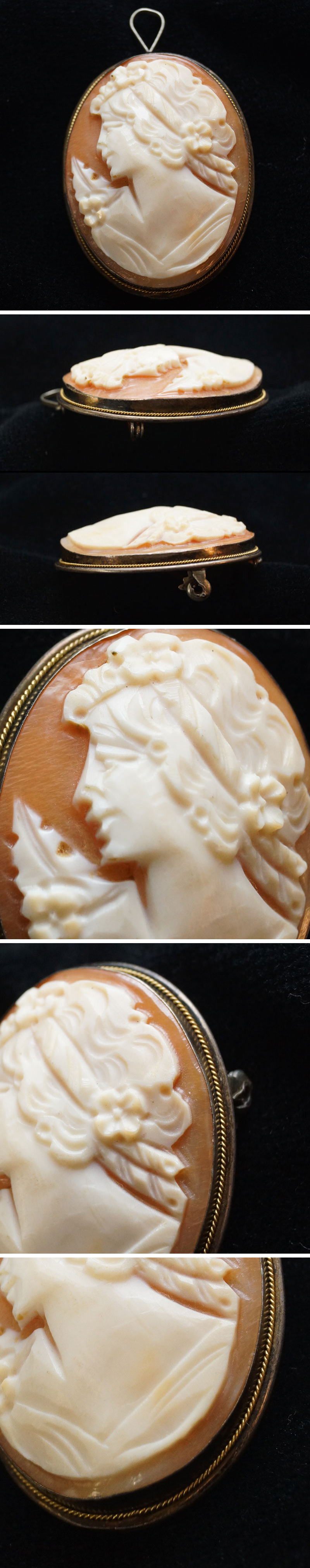 カメオ COR・308NA刻印 29×37㎜ 8.05g 女性横顔 ペンダントトップ ヴィンテージ-842