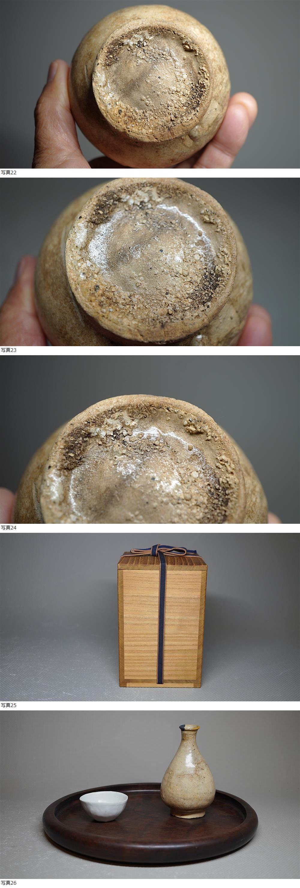 この小さいカイラギのある枇杷色の釉肌はまさに井戸手と言ってよいもので、なかなか出合えない味のある徳利だと思います。