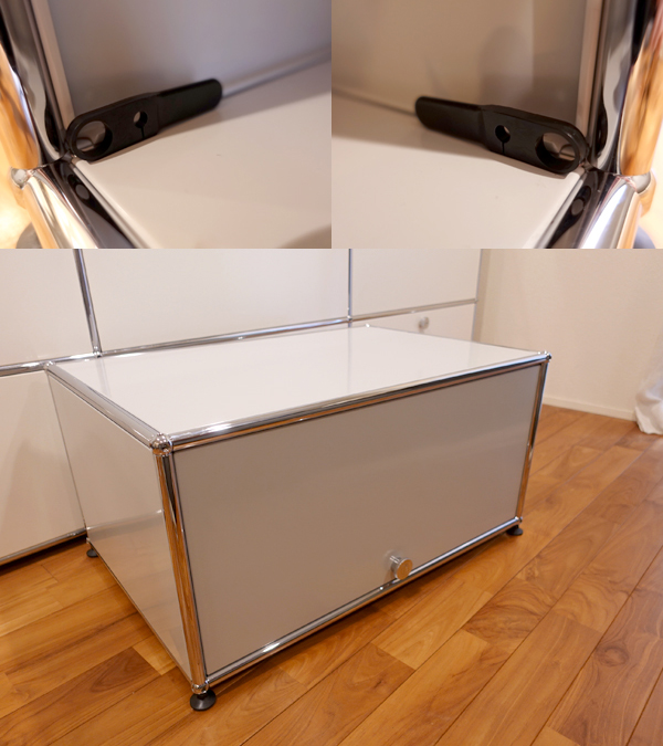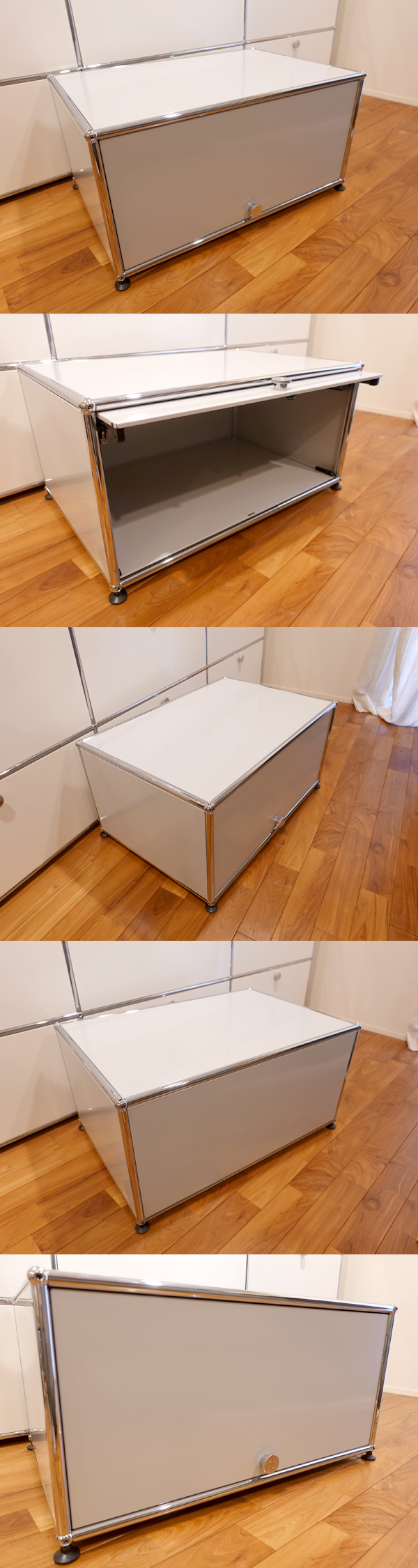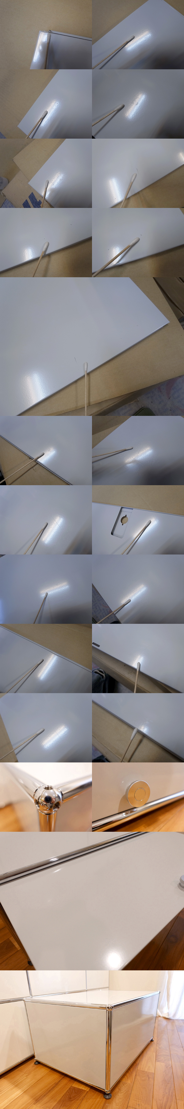 ご覧いただきましてありがとうございます。 建築家・フリッツハラーによる収納システムUSMハラーシステム[中古品]です。 チューブとボールジョイントのきわめてシンプルな部材構成により、さまざまなユニットを形づくることができます。 こちらは幅75cm×奥行50cmモジュールの小型ユニットです。 上に跳ね上げて開くフリップアップドア付きです。 パネルのカラーは定番の「ライトグレー」です。 センターテーブル、ローテーブル、TVボードやAVラック、キッチンや玄関、デスク周りの収納キャビネット、プリンタ台など、さまざまな用途でご利用いただけると思います。 将来の用途変更にも柔軟に対応ができ、長くお使いいただけるユニットかと思います。 USMの定番ラインナップにはないサイズ、仕様です。 商品全体を写した画像は、過去に出品をしました同一商品の画像を転用しております。キズや使用感など、コンディションのご説明をする上で、特に問題はないと判断しています。 ペンでキズを指し示した画像は、現品を撮影したものです。 コンディションですが、中古の状態で入手をしたものですが、特に気になる大きなキズや使用感もなく全体的に良好です。 中古品としてはきれいな個体かと思います。 各パネルとも、多少のキズや使用感はございますが、特に目立つ大きなキズや打痕などはなく、表面の光沢もじゅうぶんに残っています。 庫内のパネルに、浅い線キズや細かなスレがあり、他のパネルと比べますと若干光沢が落ちています。庫内ですので、ご使用時には気にならないと思います。 遠目から商品全体を写すした画像は、過去に出品をしました同一商品の画像を転用しております。キズをペンで指し示した画像は現品を撮影したものです。 その他、ボールやチューブに、わずかなスレなどはございますが、表面の光沢などもじゅうぶんに残っており、きれいな状態です。 表面塗装の強いハラーですが、商品の性質上、細かなスリキズは避けられないものです。 目についたスリキズなどはできる限り写真に掲載しましたが、その他気にならない程度の小キズはございますので、あらかじめご了承ください。 |