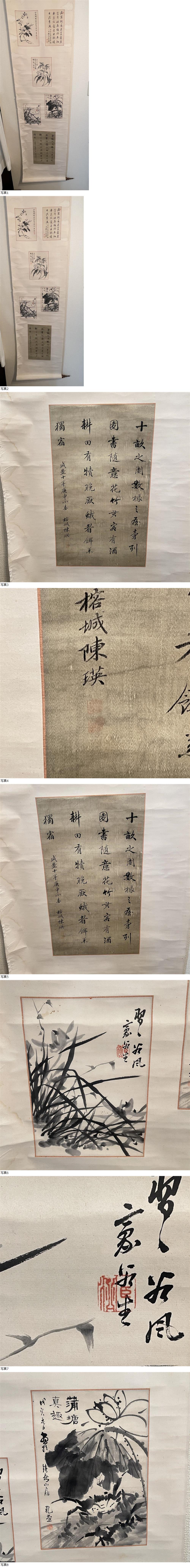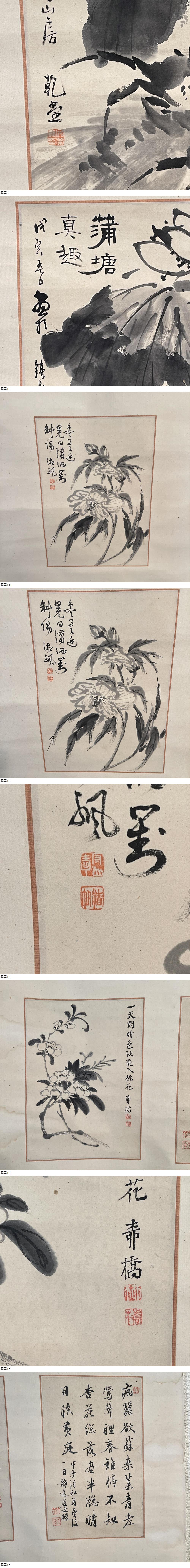 | 【B998】模写 花の圖 詩文 掛け軸 掛軸 書道 中国美術 |