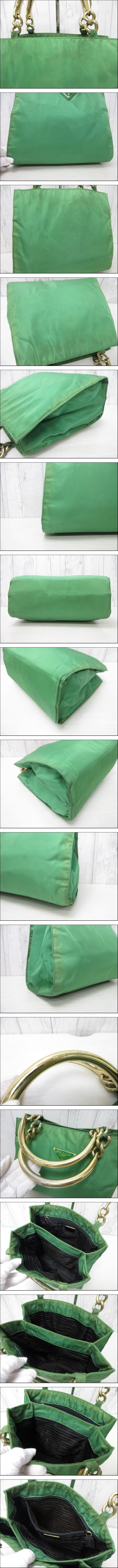 | PRADA プラダ テスート メタルハンドル デカ ロゴ ハンドバッグ バッグ ナイロン 緑 97944 | ||