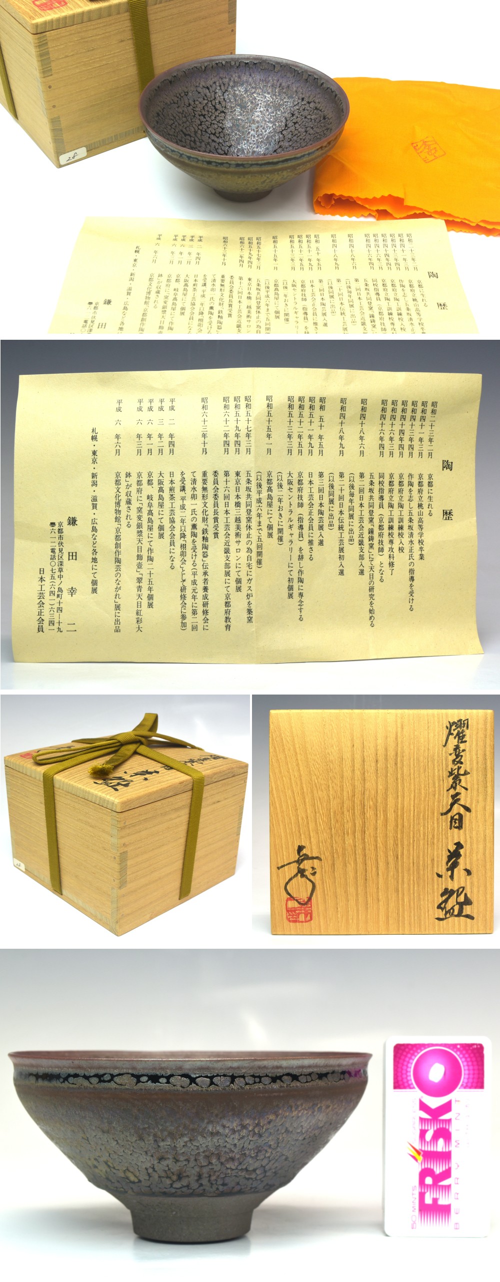 | 商品名 | 秀逸作品 京焼の名工【鎌田幸二】『燿変紫天目 茶碗』共箱 共布 栞付 直径13cm 本物保証 G2251【趣楽】 | ||