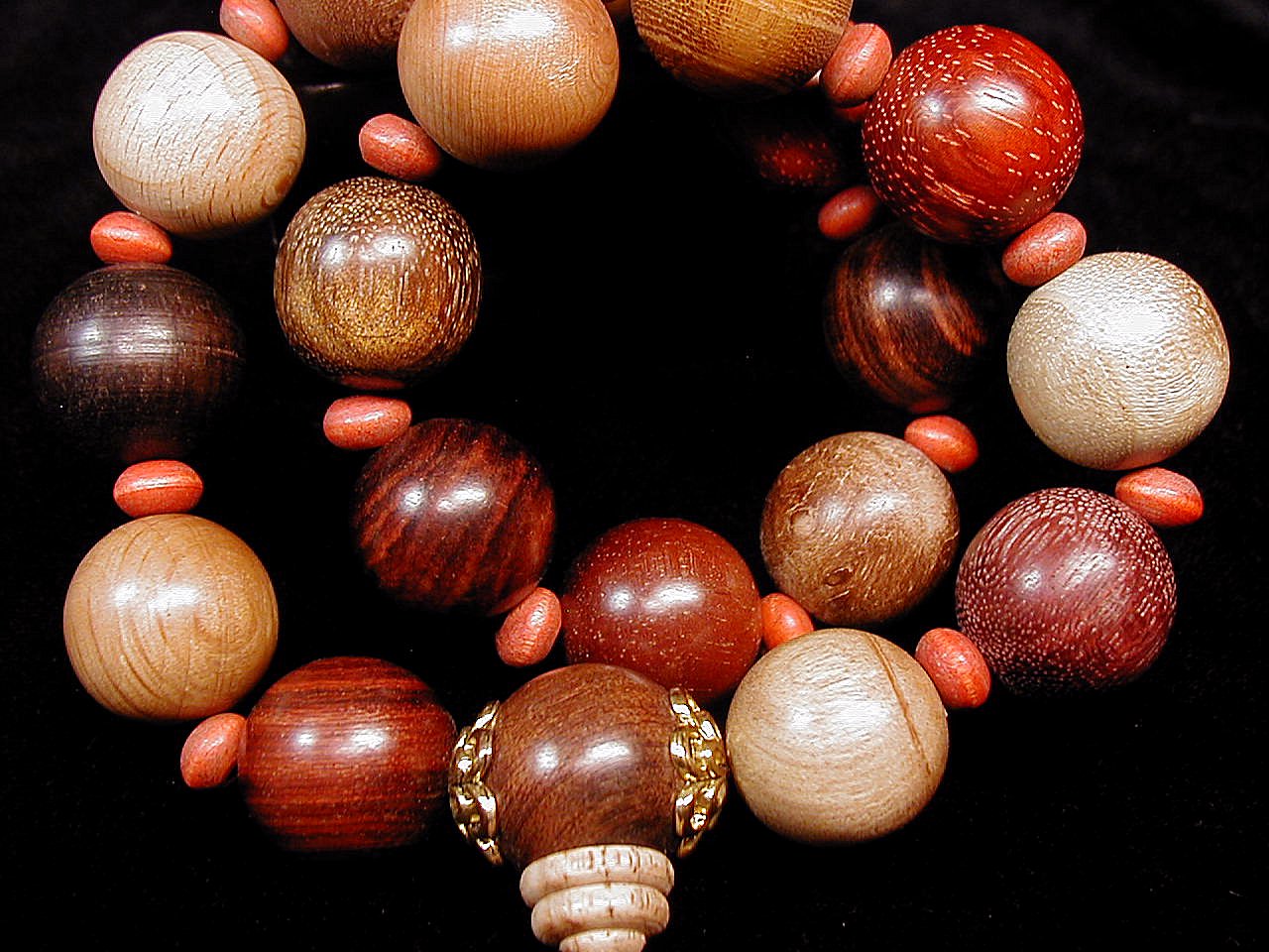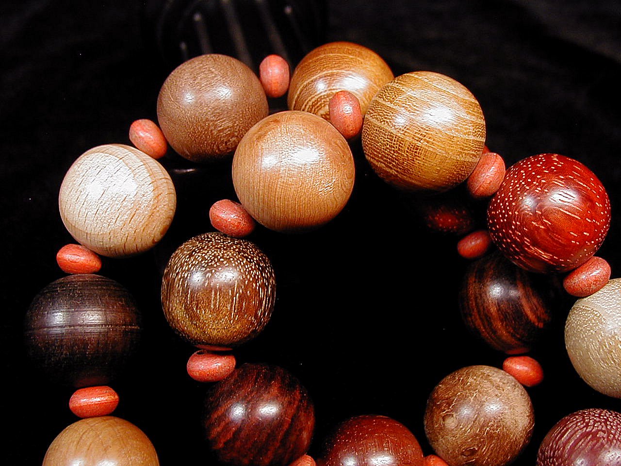 このブレスに使用されている珠玉は、世界中で産出される様々な最も珍稀、名貴、高価な銘木により製作された珠で組み合わされております。一粒一粒すべてが異なります。