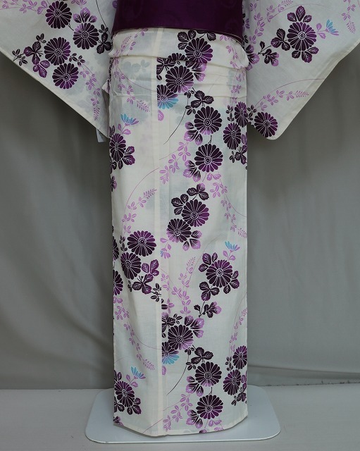 | D0654-27 木利留 キスミス・ブランドのお仕立上り(フリーサイズ)レディース浴衣です。 キスミス・ブランドならではの おしゃれで かわいい柄となっており 仕立上りですので お手元に届きましたらすぐに着用できます。 夏のイベント 花火大会やお出掛け用にいかがでしょうか。 浴衣は単品となっております 当ショップに 帯や下駄など小物も多数ございますので お寄り下さいね。 同柄生地を使用しておりますが 柄の出方が違う場合もございますので ご了承下さい。 お色などは、シェルホワイト色地に紫色濃淡色にて花柄があり所々水色も入っています。★ | ||||||