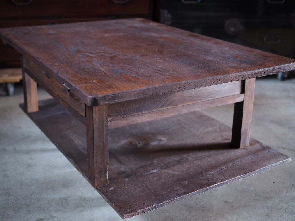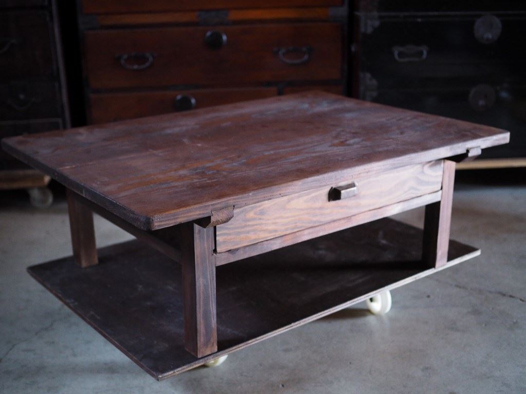 | 大きな天板頑丈造りの両面引きローテーブル 昭和初期 古録展 送料別 Hサイズ 中古 品番F4223 | |