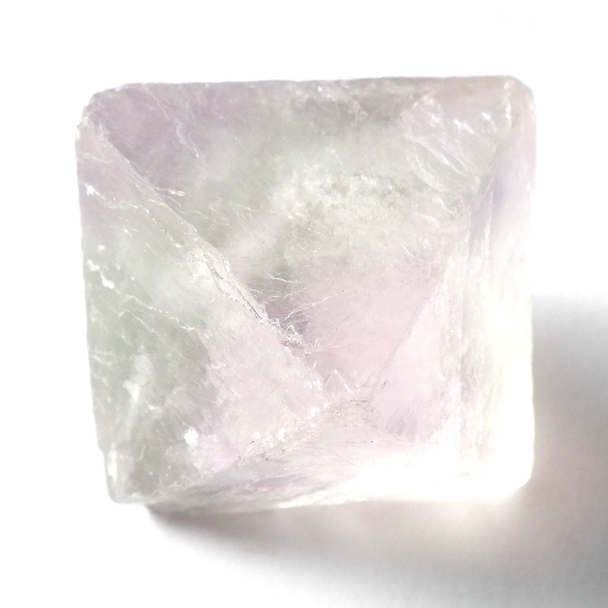 チャイナ産の八面体フローライトです。この正八面体の形は、蛍石が平面に平行に割れやすい性質を利用して加工したものです。光に透かすと一層の美しさです。| 出价者 | 信用 | 价格 | 时间 |