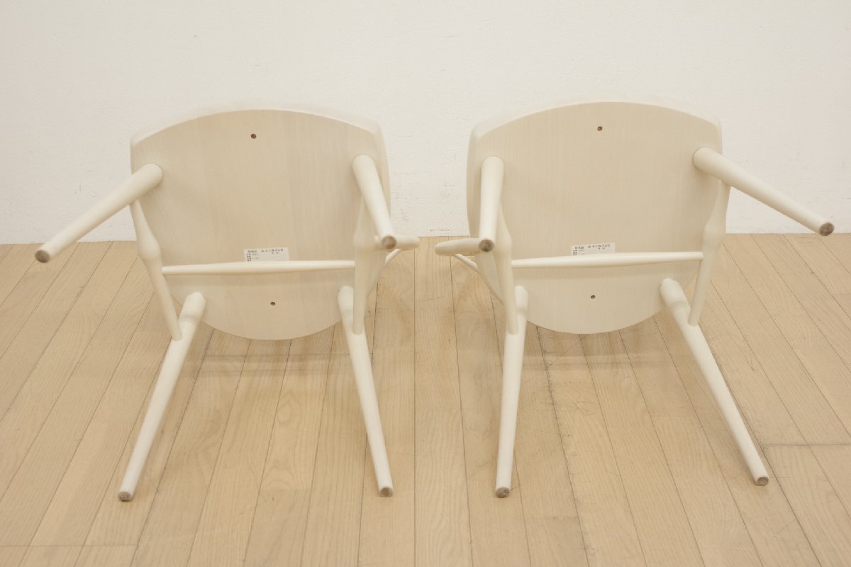 【商品紹介】 ヨーロッパでのブナの愛称から着想したシンプルでありながら優雅な世界観を表現するレイ・シリーズより、ホワイトのLEIチェア2脚セットのご紹介です。 今回ご紹介するお品は、背もたれのカーブが特徴の優雅で軽やかなデザインが特徴。 優しいフォルムが、マットな黒で引き締められ、そこにあるだけで目を惹くアクセントチェアとなっております。 シンプルスタイルにも、北欧スタイルにも馴染み、インテリ家具としての価値を高めてくれる逸品です。 ご自宅のダイニングチェアとして、また玄関やリビングの一角で腰掛けとして等、是非この機会にご検討下さい。 【コンディション】 ・フレーム全体的にスレ傷、塗装の剥がれ、打痕キズが見られます。 目立つようなダメージはなく、まだまだご愛用頂けるお品ですが、使用品であることをご理解の上ご検討下さい。 ※清掃、撮影時に目立つ箇所は写真掲載しておりますが、同等の傷などがあるものとご了承ください。尚、商品ページの掲載写真にて状態をご確認の上、ご検討いただけますようお願いいたします。 この他にも商品を多数出品しておりますので、こちらから御覧下さい。 | ||