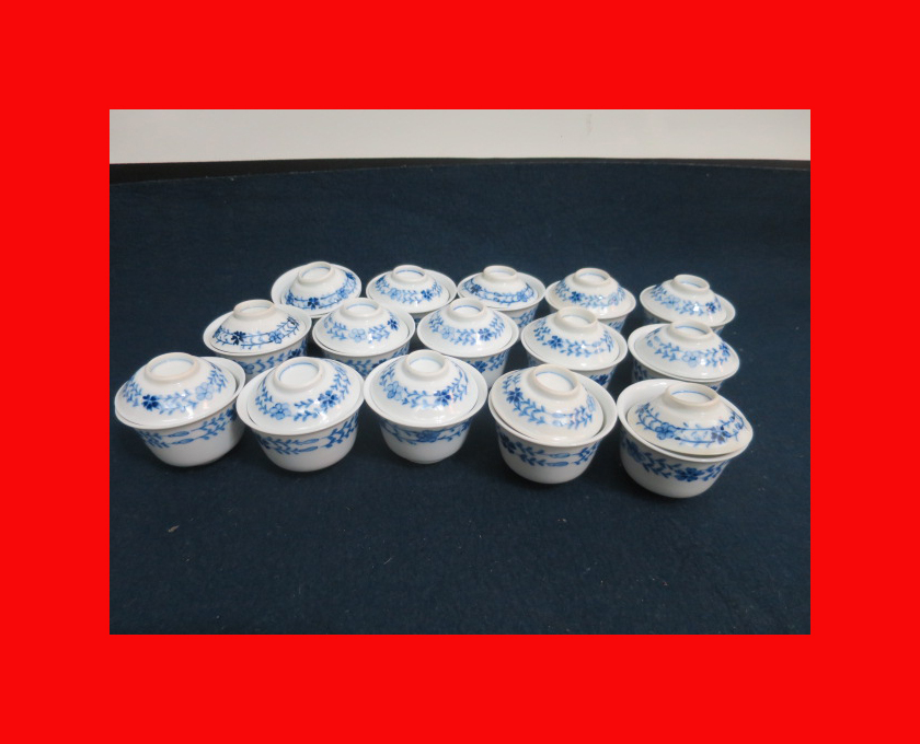 「蓋茶碗15客K-58」 直径7.5cm高さ7cm友箱 (詳しくは写真にてご確認の上ご判断下さい) |