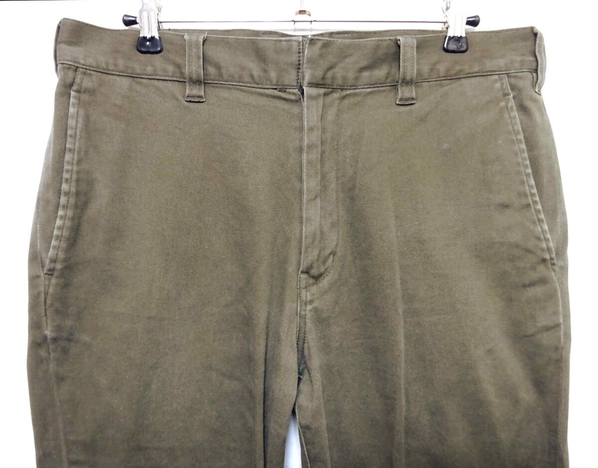 ●Collective コレクティブ・メンズビギ の、 コットン・ストレッチ・テーパード・チノパン・ワークパンツ・モスグリーン(海松色)・サイズ:L / USED です。 ●ポケットはフロント両サイド、後ろ両サイドに付いています。 ●ポリウレタン入りですのでストレッチが効いて、快適にご使用いただけるものと思います。 ●デザイン性、機能性に優れ、トップスやシューズと組み合わせて、いろいろなコーディネートが楽しめる、大変便利な一品だと思います。 |