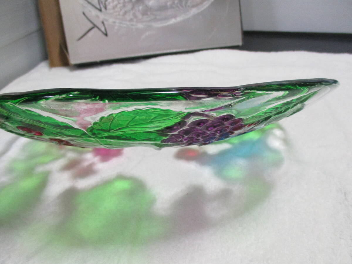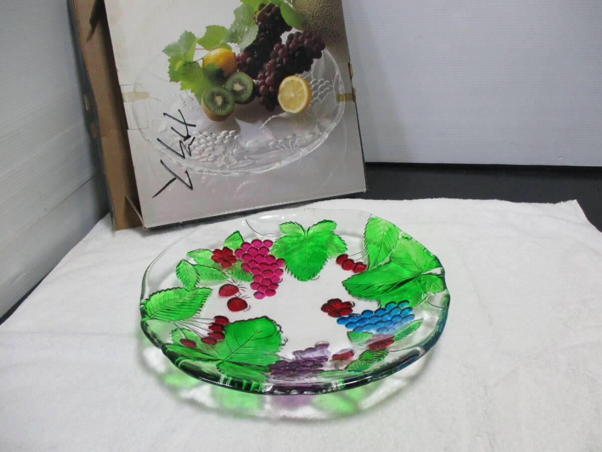 | ★ガラス製 カラーの果物柄の盛り皿 未使用(お 100 №第12 7.3.28 ) | ||