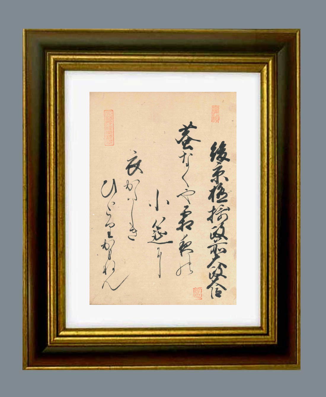 「百人一首」原本の大きさ タテ23.7センチ ヨコ15.3センチ。額縁の大きさは、タテ43.0センチ ヨコ30.0センチ。額縁は新品です。 |