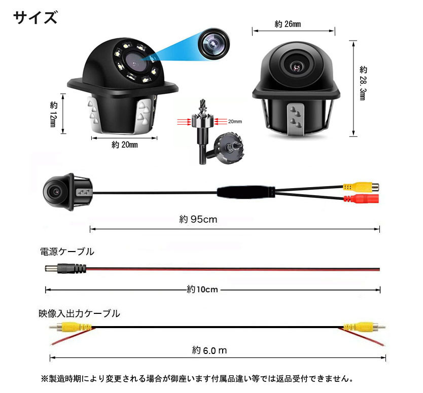 "【62万高画質CCDセンサ搭載】超高画質の62万画素なので、超低照度の夜間でもハッキリと対象物を確認でき、様々な況でもご愛車を守ることができます。全長は6メートルです。映像は鏡像です。