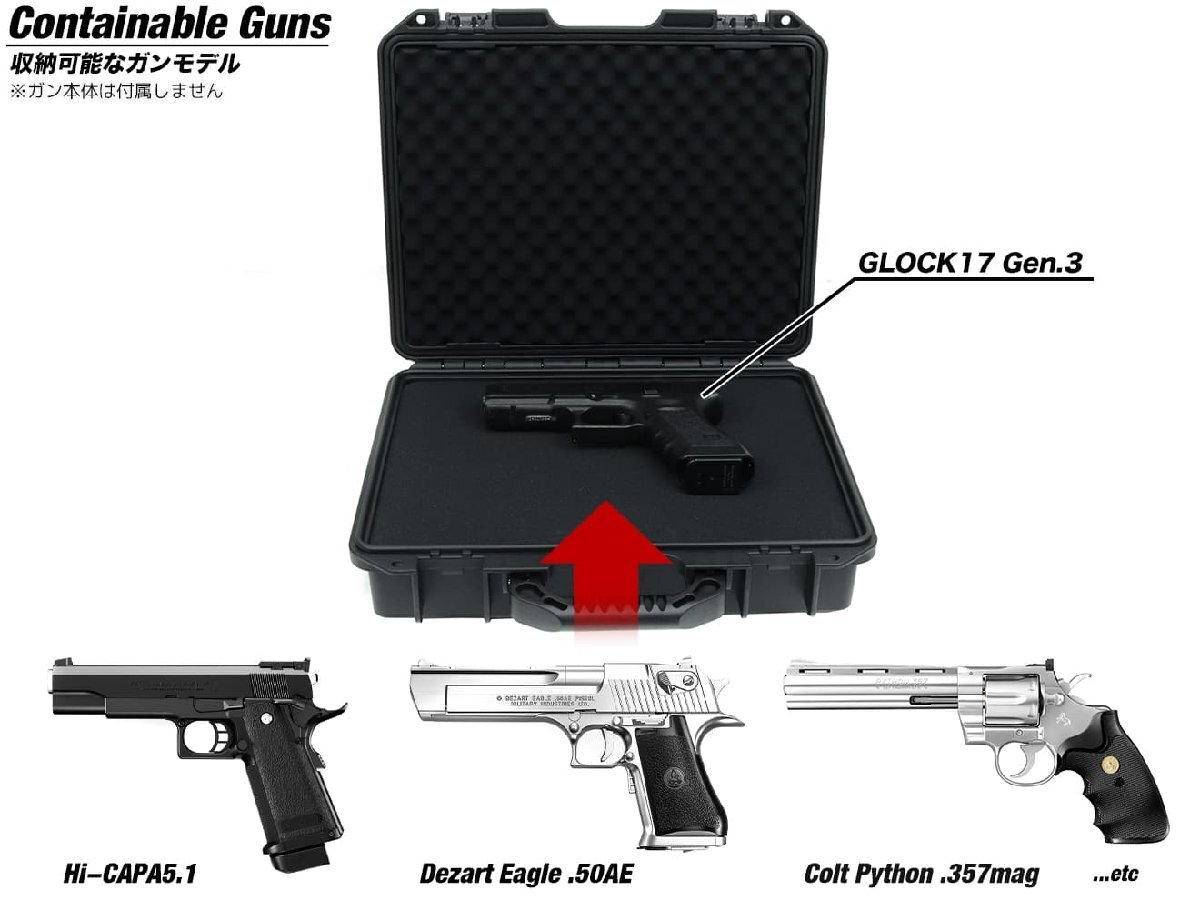 商品説明 ITEM INFO 防水防塵IP67対応!大切なアイテムをしっかりガード MILITARY-BASE IP67 ウォータープルーフ ハードガンケース 8L 33cm×25cm×9.5cmです。収納容量が8Lまで対応します。 防水防塵規格IP67を取得した強靭なキャリングケースです。IPの6は完全防塵であらゆる粒子からケース内部を保護します。 IPの7は防浸型で水深1mまで30分間水の侵入を防ぎます。 内部には大切なアイテムを守るスポンジを設置!ケース側のスポンジは方眼紙の目のように予めカットラインが入っていて、収納するアイテムに合わせて容易にカットできるようになっています。 ボディ素材には水よりも比重の軽いポリプロピレンを採用。耐衝撃性や耐薬品性に優れた素材で、それでいて軽量なので運搬もしやすくなっています。 ハードな使用にもしっかり耐える安心設計。大切なガンやパーツはもちろんカメラ、ドローンなどあらゆるアイテムでご使用いただけますヨ♪ ■小~大型サイズのハンドガンとマガジンが収納可能 グロックシリーズ各種やM9/M92、P226、ガバメントなど小~中型サイズのハンドガンはもちろん、デザートイーグルやパイソン6インチなど大型のハンドガンも収納可能です。グリッドスポンジは任意の形状にカットが容易で、スマートにガンやマガジンを収納できます。 ■気圧調整ダイアル搭載で航空機の運搬でも安心! 防水型のケースはその特性上、気密性が高くなっております。航空機に搭載した際に、外気圧の低下によるケースの破損を防ぐため、外気圧とケース内の圧力を同調させる気圧調整ダイアルを搭載しています。 商品基本情報・スペック ITEM SPEC ●商品名 : MILITARY-BASE IP67 ウォータープルーフ ハードガンケース 8L 33cm×25cm×9.5cm ●商品番号 : H8024B8L ●ブランド : MILITARY BASE ●カラー : BK ●素材 : ポリプロピレン ●外形サイズ(各部最大) : 約35.9cm×30.5cm×9.9cm ●内部サイズ(スポンジ無時、各部最大) : 約33cm×25cm×9.5cm ●重さ : 約1.1kg 注意事項 ITEM NOTE ∇商品固有の注意事項 ※水際での使用の前には必ず中身を入れず防水性のチェックを行ってください。防水性能はケース合わせ面外周に設置したシール材にて確保しております。この部位に異物がかんでいたり、物を挟んでしまって万が一キズが入ってしまった場合などは、本来の防水性を確保できなくなってしまいます。初回のご使用においても、当店でも点検を行って出荷しておりますが、配送時などに想定できない応力がかかってしまい、ケースが歪んでしまうことも万が一ではございますが、考えられますのでご確認とご理解をお願い致します。 ∇ご購入時の留意事項 ※商品はすべて点検してからのお届けになります。商品によってはパッケージの開封等を行う場合もございますことをご了承ください。 ※商品には万全を記しておりますが、万一不備な点がございましたら、お手数ですがお問い合わせフォームにてご連絡頂ますようお願い致します。なお、海外製品につきましては、輸入時についた若干の傷、痛み等が見られる場合がございます。 国内製品のような完全品をお求めの方はご遠慮下さい。 ※商品が適合外であった場合、またはお客様都合による交換・返品・返金は出来ません。よくお確かめの上、ご購入下さい。 ※モニター環境により、実際の商品の色と若干異なる場合がございますのでご了承下さい。 ※他サイトでも同時販売の為売り切れの際はご了承下さい。 ※売り切れの際は早急にご連絡させて頂きます。(当社休業日を除く) 関連商品 RELATED ITEM |