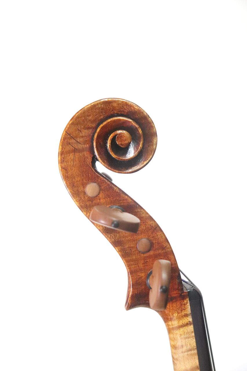 Li Zhihuaは、クレモナで活躍する新進気鋭の弦楽器製作家です。氏はMaurizio Bissolottiの弟子であるGiovanni Colonna氏およびNicholas Gamberini氏に師事し、クレモナの弦楽器製作学校を卒業しました。現在はクレモナに自身の工房を構え、アンティーク仕上げを得意とするバイオリン製作に取り組んでいます。2024年のトリエンナーレ国際弦楽器製作コンクールでは予選を通過し、参加作品目録の写真集に楽器が掲載され、また、Diplomaを獲得し、その高い製作技術が認められています。