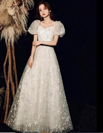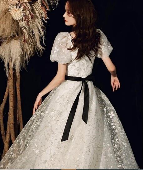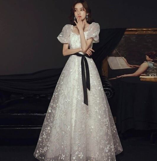 ハイウエストチュールのプリンセスドレスです。白のサテン地に金と銀のラメ刺繍をほどこした同色のチュールを重ね全体的にフェミニンでエレガントな雰囲気に。リボン配色ハイウエストで脚長効果もあり、下半身はチュールをたっぷりと使用しゴージャスな印象に。パーティやイベント、結婚式など、様々なシーンで、気品のある印象を与えてくれる一枚です。裏地なし。背中ファスナー。胸パット付。ウエスト黒のリボンベルト付き。| 出价者 | 信用 | 价格 | 时间 |