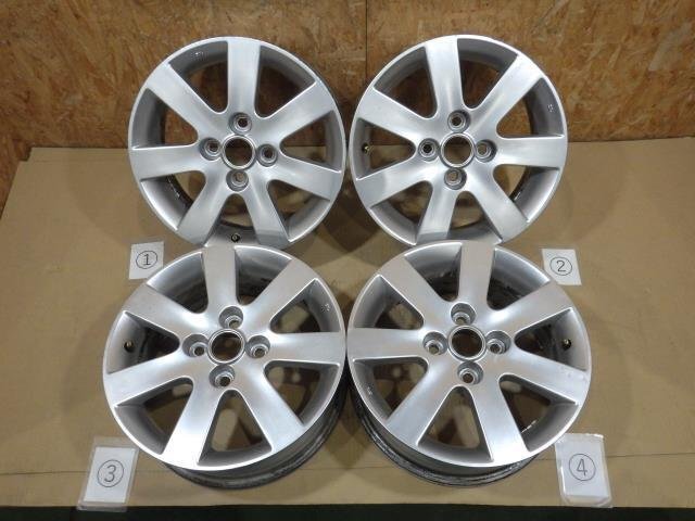 | 備考 | アルミホイール4本、三菱コルトラリーアート前期純正、16インチ6.5J+43、PCD114.3/4H、ハブ径約64mm、 ①リムガリキズ、②クリアハゲ、欠品:エアバルブ/センターキャップ/バルブコア、全体:傷&汚れ、 | ||||