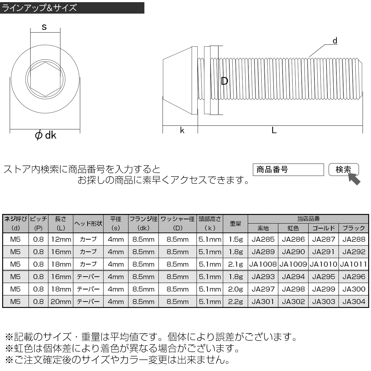 | ■ 64チタン テーパーヘッド キャップボルト Curved | ■ 商品内容 | |