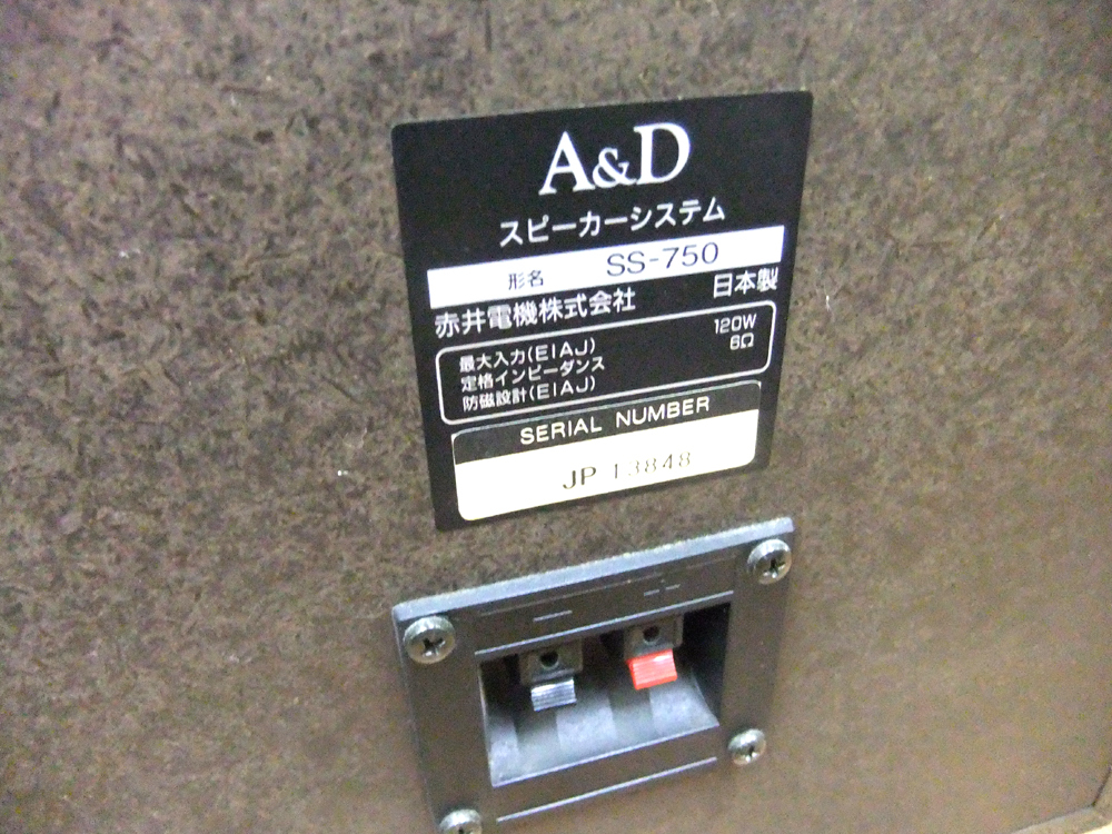 オーディオ スピーカーセット A&D SS-750 最大入力 120W 定格インピーダンス 6オーム 中古 札幌市厚別区 厚別店