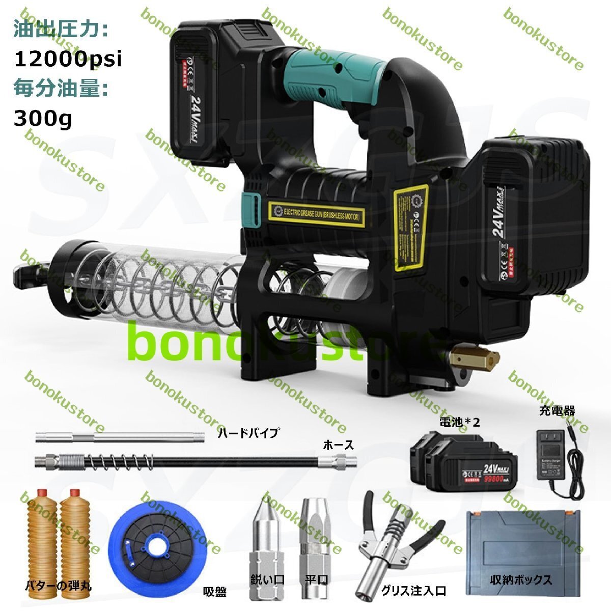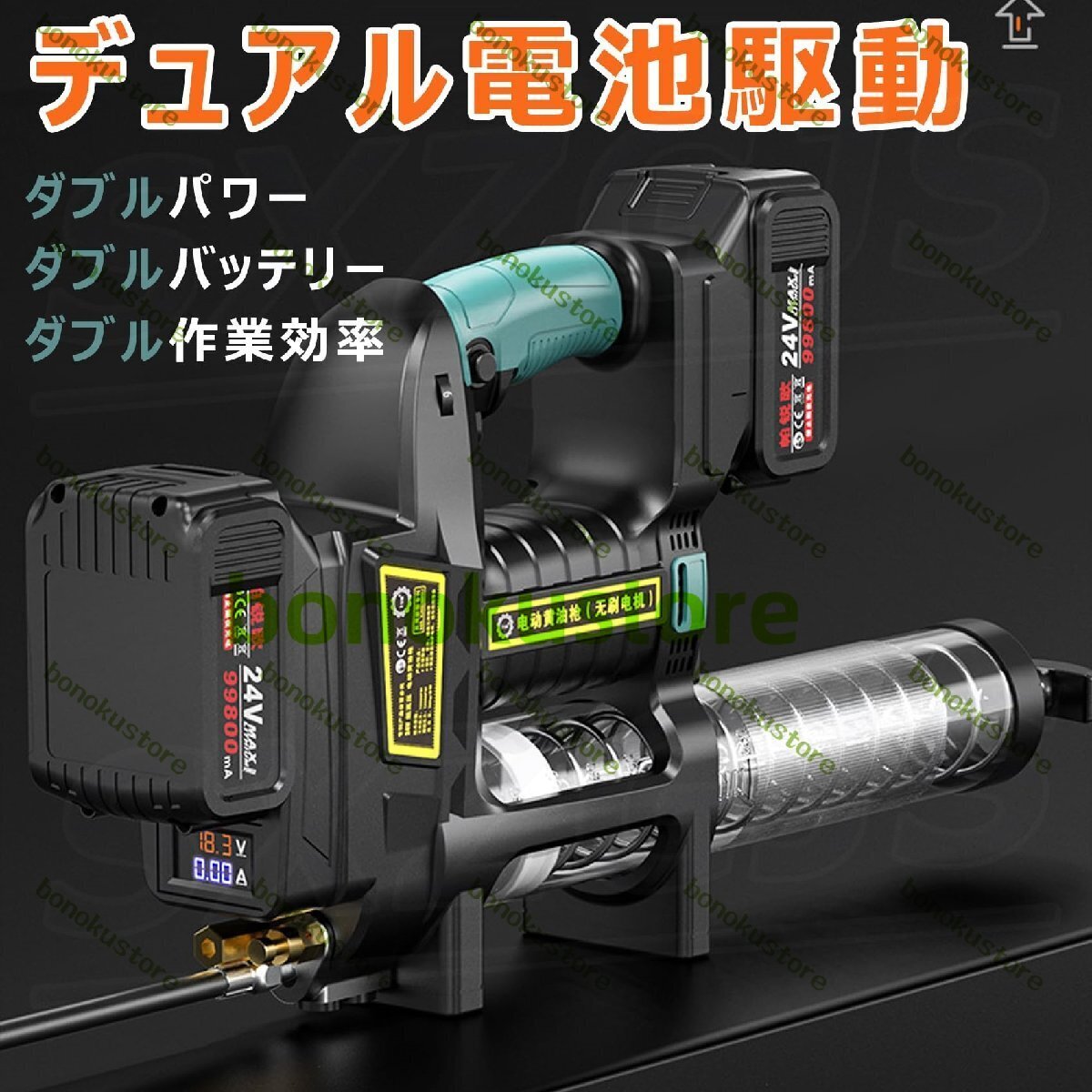 電動グリスガン 【デュアル電池】 充電式 コードレス プログリースガン 速度6段階調整可能 24V 12000PSI高圧 樽型●ケムシ型用 多機能 1台2役 掘削機グリースガン 農業機械 車 オートバイのメンテナンス 船舶用