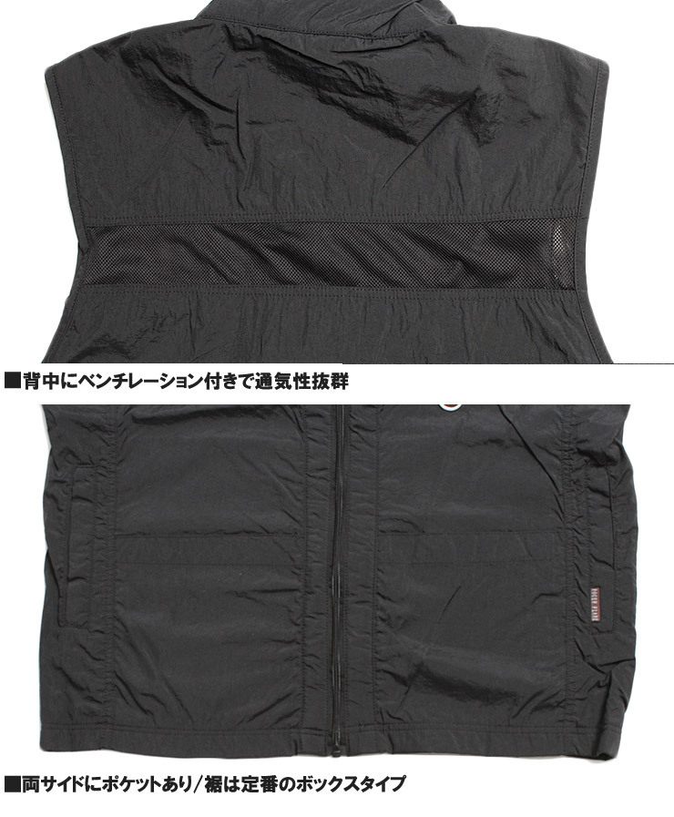 | 商品名 | 【新品】 4L ブラック ナイロン ベスト メンズ 大きいサイズ 抗菌 防臭 メッシュ 軽量 ワッシャー加工 ジップアップ スタンド ブルゾン |