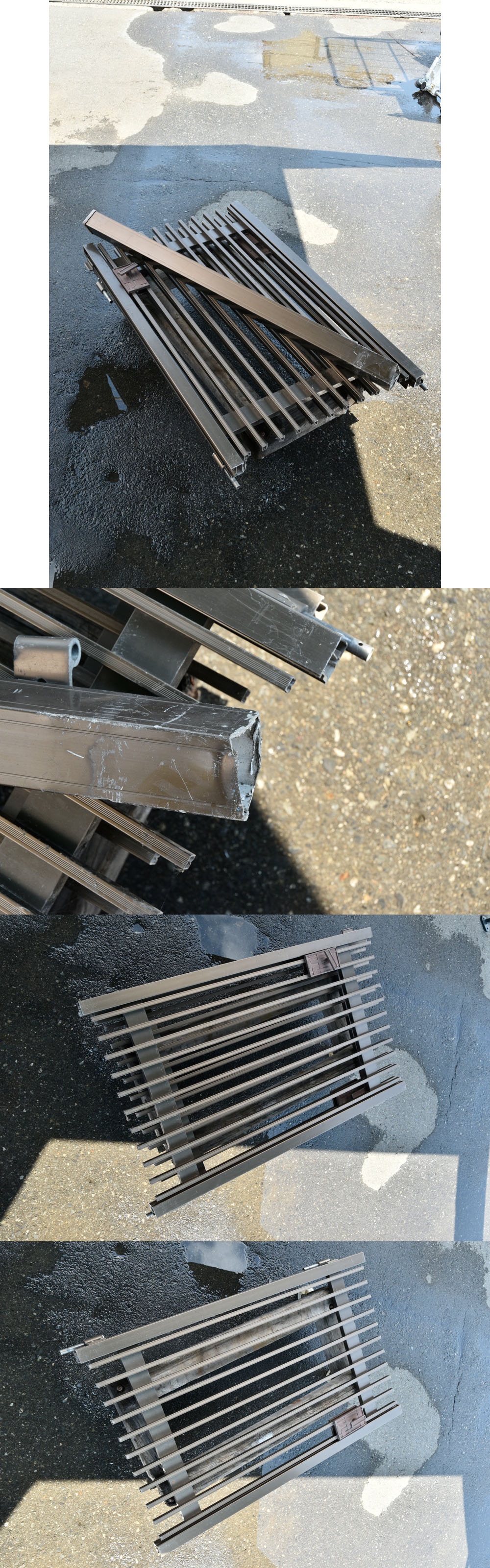 ----------------------------------------------------------------------------------------- ●送料や注意事項は必ずご確認下さい。落札後にトラブルになるケースが増えております。● ◆コンディションは写真・文章にて記載して有りますが、全てのキズの写真は掲載致しておりません。大きなダメージを除き見落とし、記載漏れが有る事はご了承下さい。 ◆当サイトにて出品する商品は多種多彩で、当方商品知識の無い物も多数ありますので落札後の質問やメンテナンス等にはお答えできません。 ◆入札された時点で、画像、文章をご理解していただいたものと判断させていただきます。不明な点は前もってQ&Aからお願い致します。入札後の質問やお電話等でのキャンセルは一切受け付け致しません。 ◆商品説明に「ノークレーム」と記載しているものに関しては、如何なる状況で届いても保証致しません。詳しくは注意事項の「商品到着後について」の最後に記載しておりますのでご確認下さい。 ---------------------------------------------------------------------------------------- 重なって分かりづらいですが、門扉は2枚あります。 中古品ですのでキズ、ヨゴレ、サビ等有ります。未清掃です。 柱片方無し。 パーツ揃っているかどうかは分かりません。 こちらの商品は、運送事故を含め、ノークレームのジャンク品での出品とさせて頂きます。 運送保険も入りませんので、業者補償もありません。予めご了承下さい。 片方 幅63 奥10 高101cm | ||