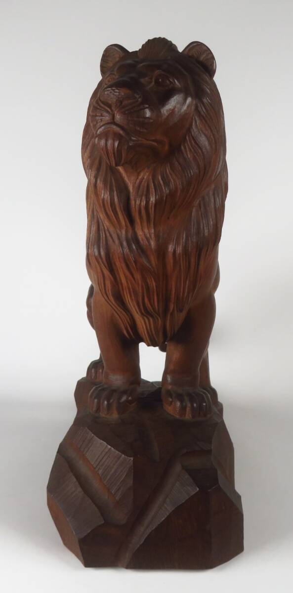 | 【SAKURAYA】【昭和28年製作 木彫 獅子 置物/彫刻家 阿部晃工】細密彫刻 作家 在銘 共箱 一刀彫 希少品 骨董品 古美術品 高さ35cm | ||