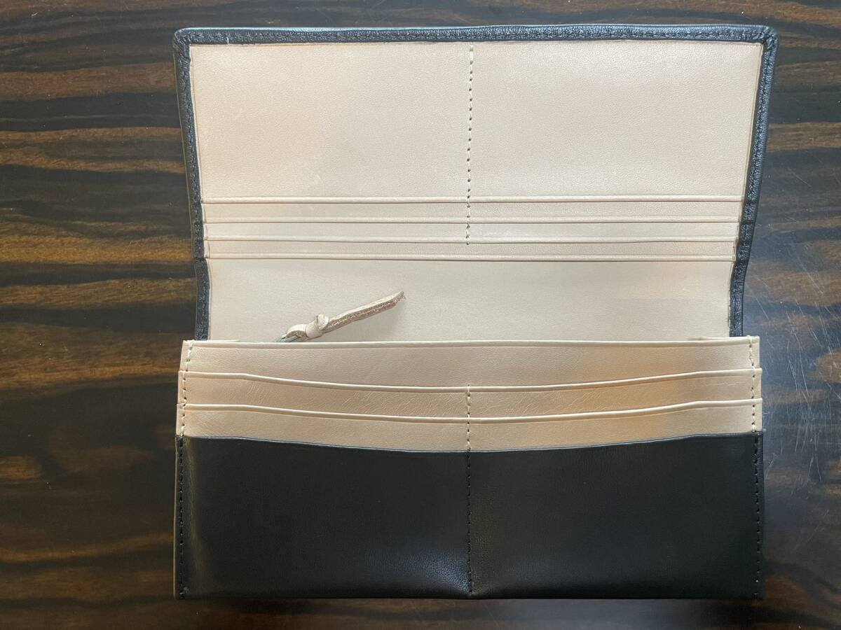 ■名称未使用 本革 長財布 ウォレット お釣り入れあり  黒/アイボリー 光澤なし柔らかい革