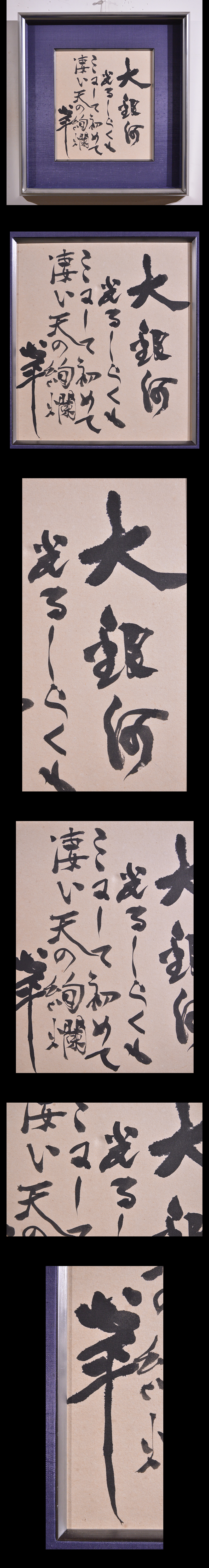 【品名】 草野心平 書 「大銀河~」 詩人 福島県いわき市 文化勲章 額装 【材質/技法】 紙本・肉筆 (印刷ではない) 【サイズ】 額装全体:約42.0cm×45.0cm 作品部分:約24.2cm×27.2cm 【付属品】 なし 【状態】 時代相応の古色、額に擦れ傷などあります。ご了解ください。 ※画像をよくご覧の上ご入札ください。 お好きな方どうかよろしくお願いいたします。 ●草野心平 詩人。福島県生れ。中国広東の嶺南大学に学ぶ。詩誌《銅鑼(どら)》(1925年)を創刊,《歴程》(1935年)の中心的な同人。アナーキズムの傾向が強く,また擬声語を駆使したフォービスム的詩風に特色がある。全編蛙を素材とした第1詩集《第百階級》をはじめ《母岩》《富士山》《日本沙漠》《マンモスの牙》などの詩集がある。1987年文化勲章。 【発送】 ゆうパック「100サイズ」にてお届けいたします。 | ||||||||