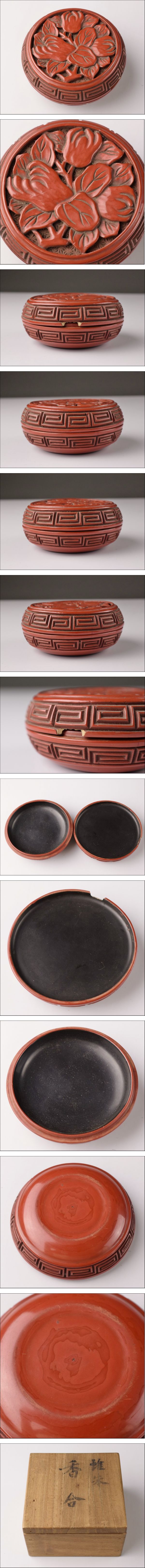 品 名:古美術品 時代 堆朱 仏手柑彫 香合 箱付 寸 法:高さ 3㎝ 直径 6.8㎝ 総重量:75g 状 態:一箇所傷がございます。写真にてご確認願います。 | |||