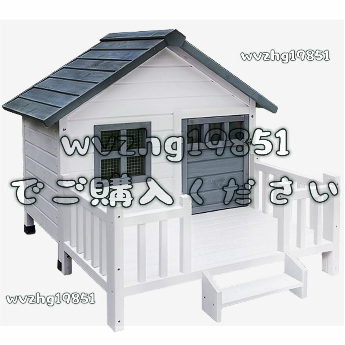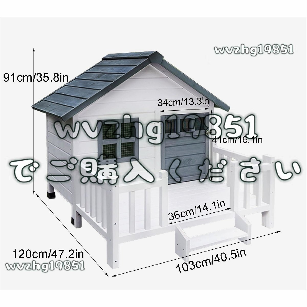 ポーチ付き屋外木製犬小屋 屋根 ドア シャッター窓付きキャビンスタイルの高床式犬用シェルター 中型大型犬用