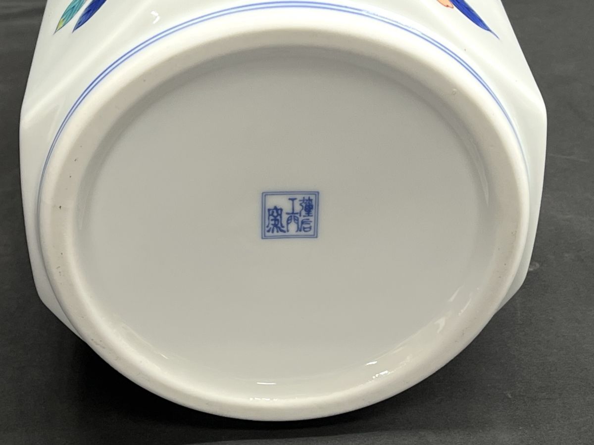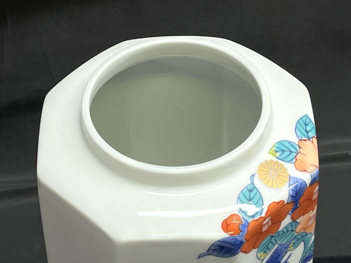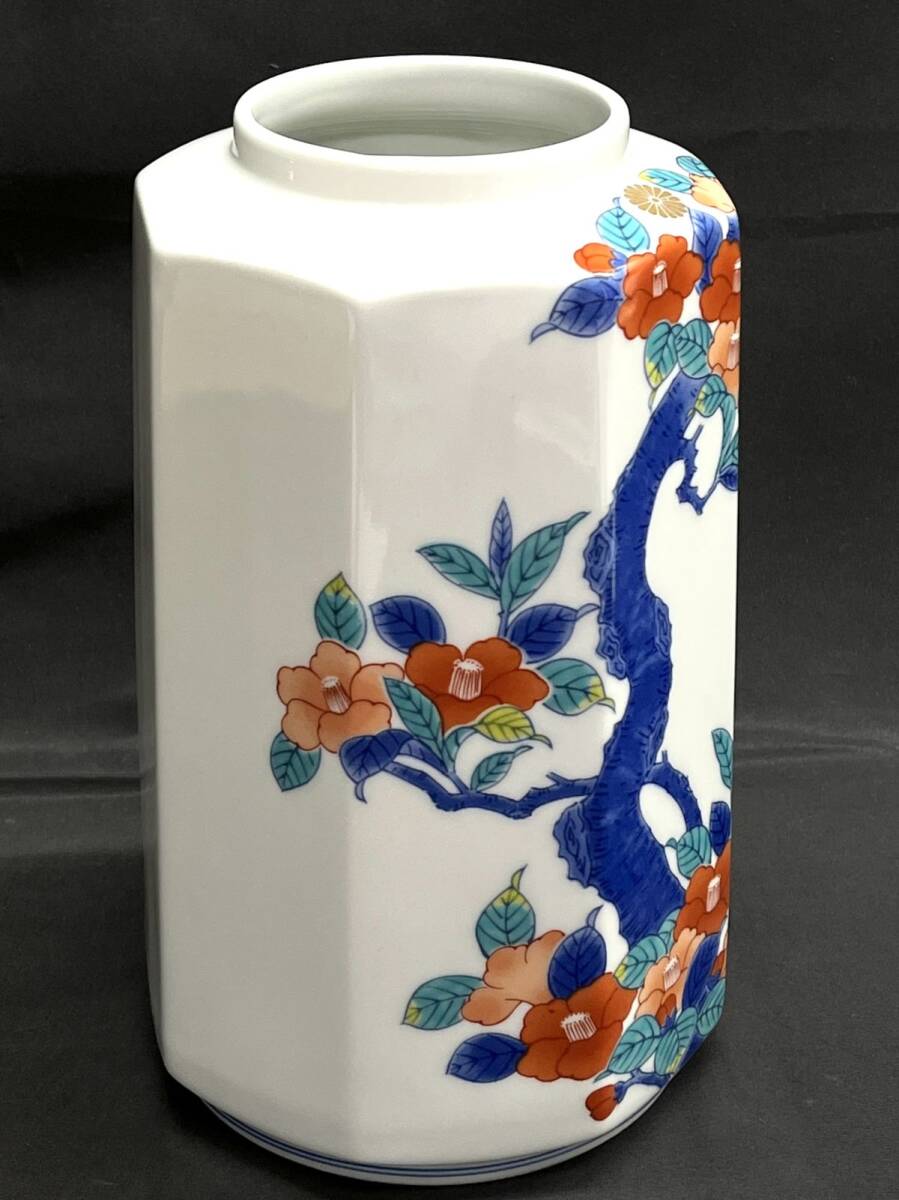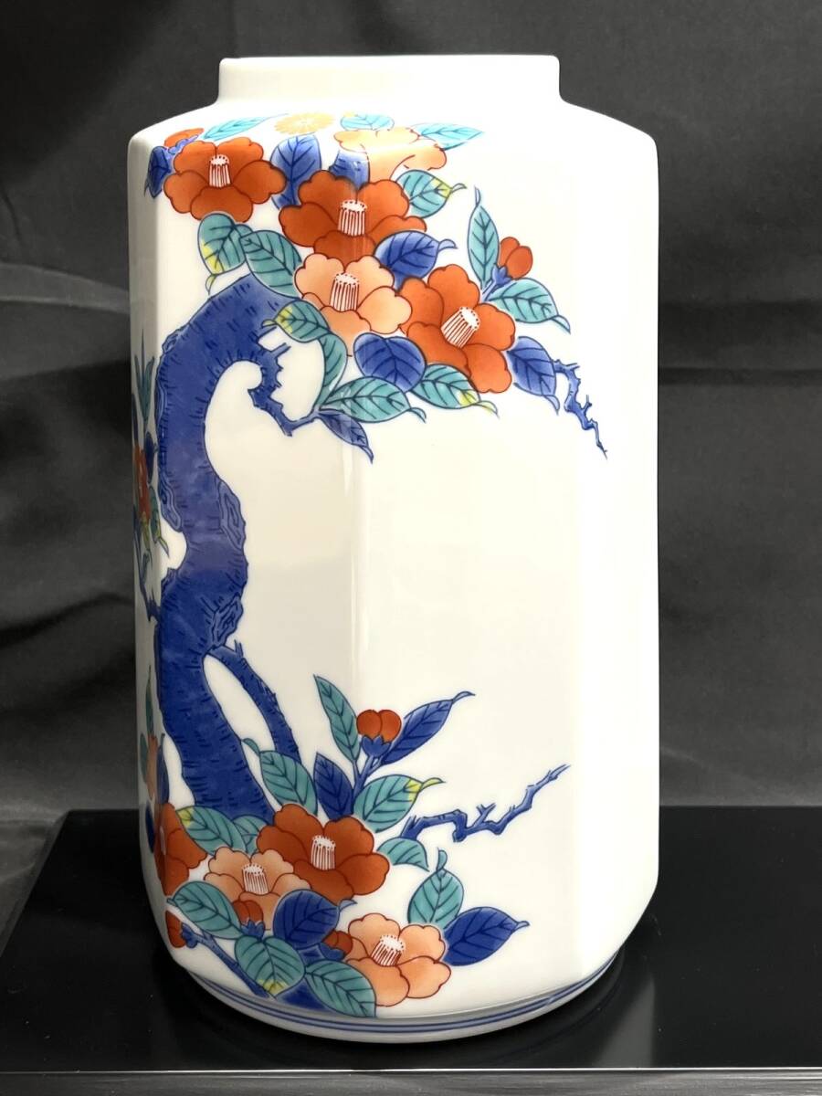 | 【R675】極美品 福右衛門 八角花瓶 椿絵 色絵 台座付き 有田焼 鍋島焼 陶器製 高さ22.3cm 染錦 柿右衛門 b | ||